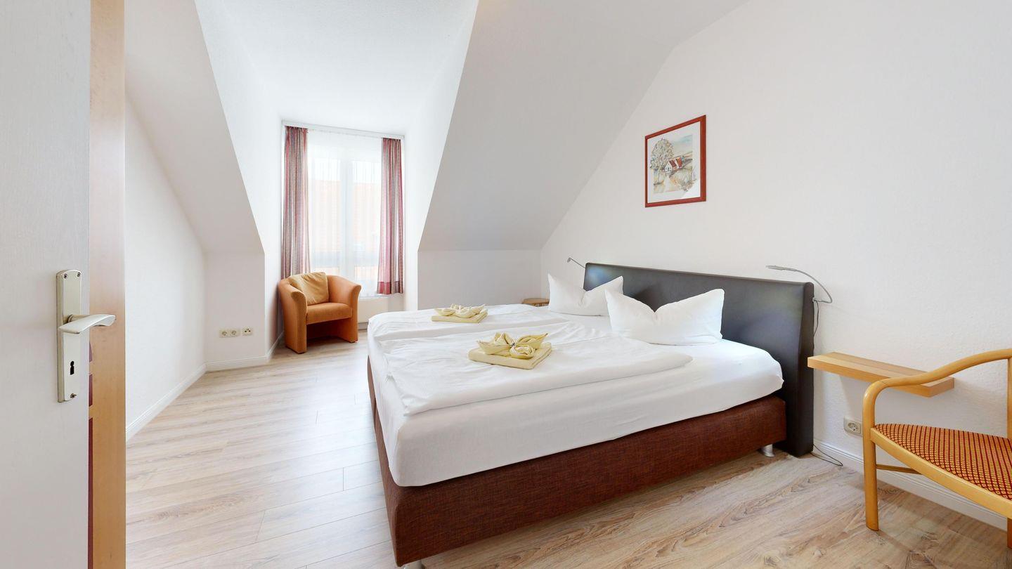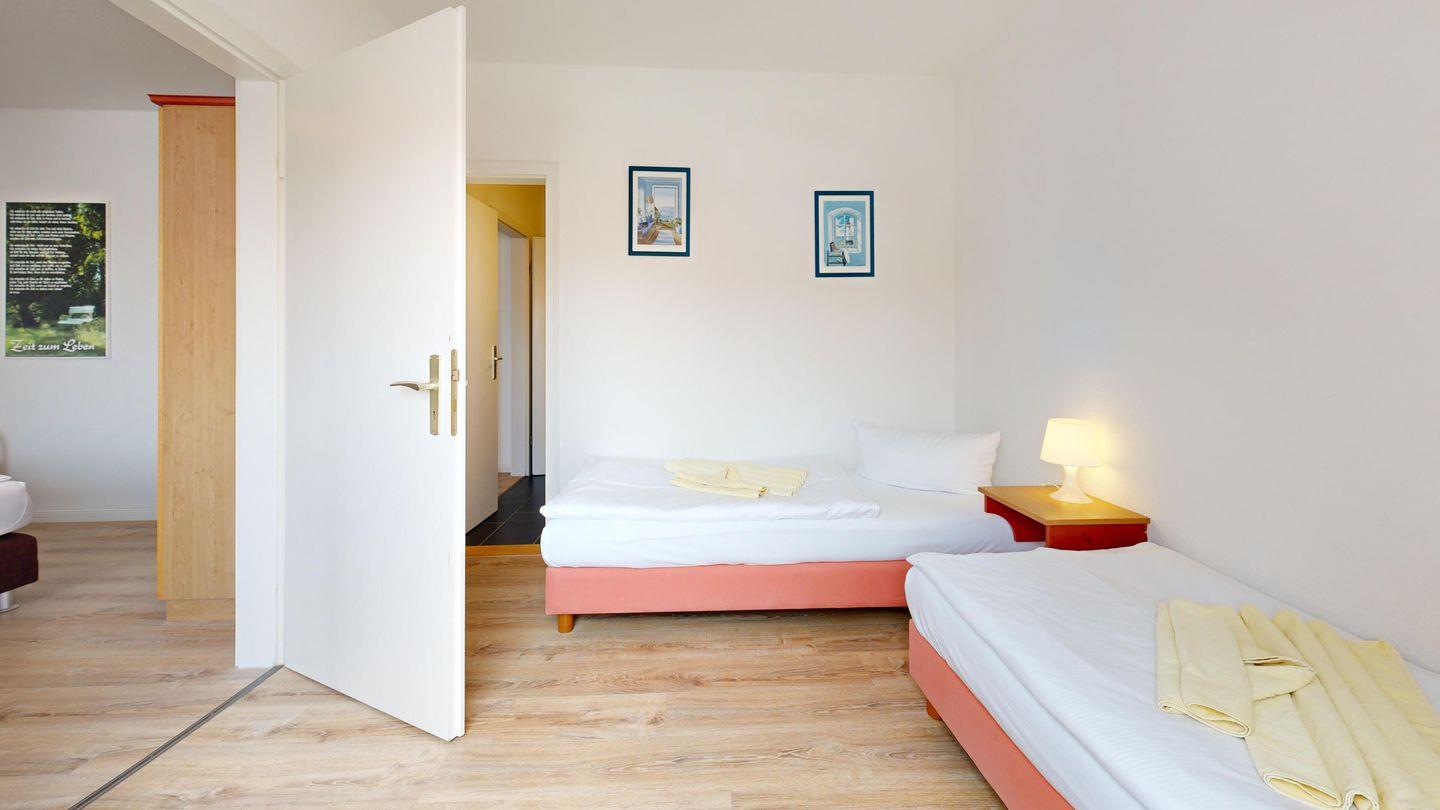 * 1 Schlafzimmer mit zwei Einzelbetten