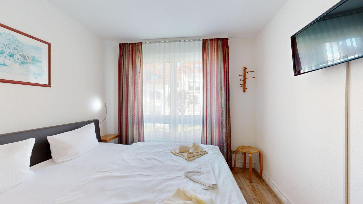 * 1 Schlafzimmer mit einem Boxspringbett (Doppelbett) und TV