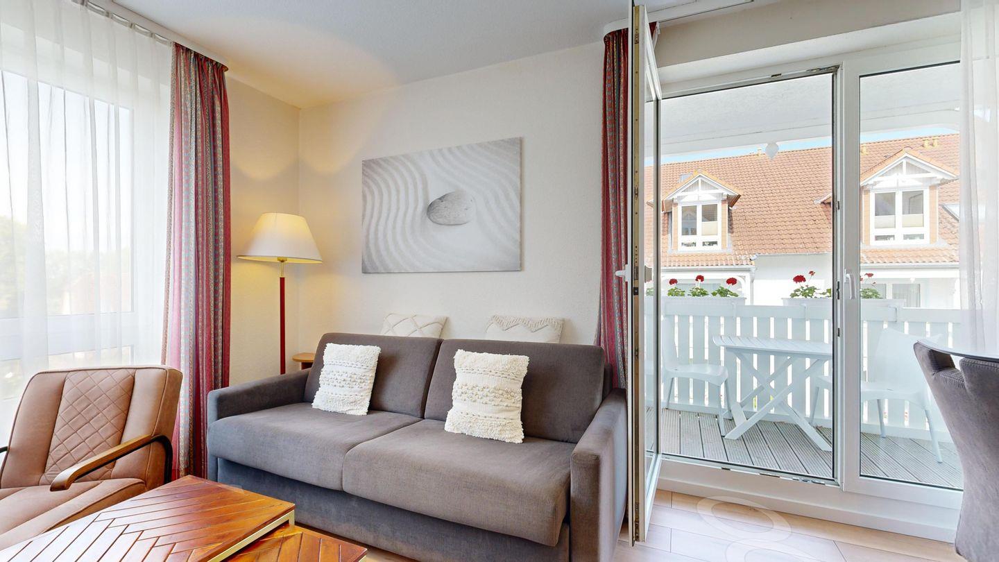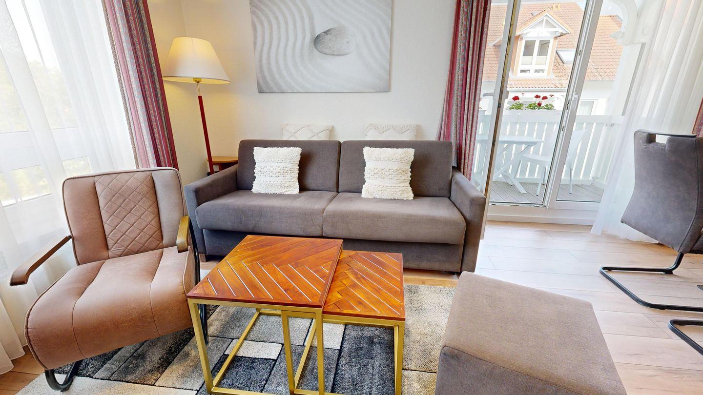 * Wohnzimmer: Couchgarnitur (Schlafgelegenheit für 2 Personen), Kabel-TV, WLAN, Esstisch