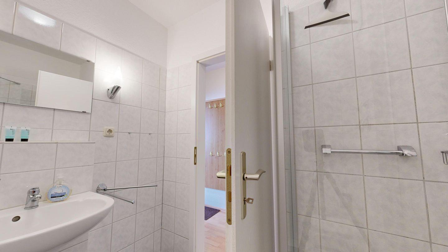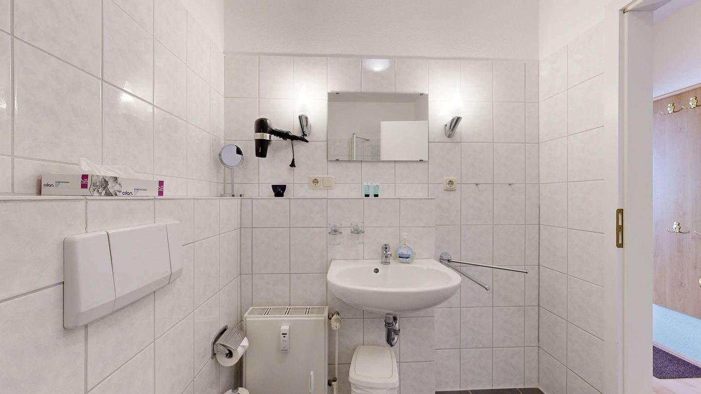 * Dusche (Tiefeinsteiger), WC, Haartrockner