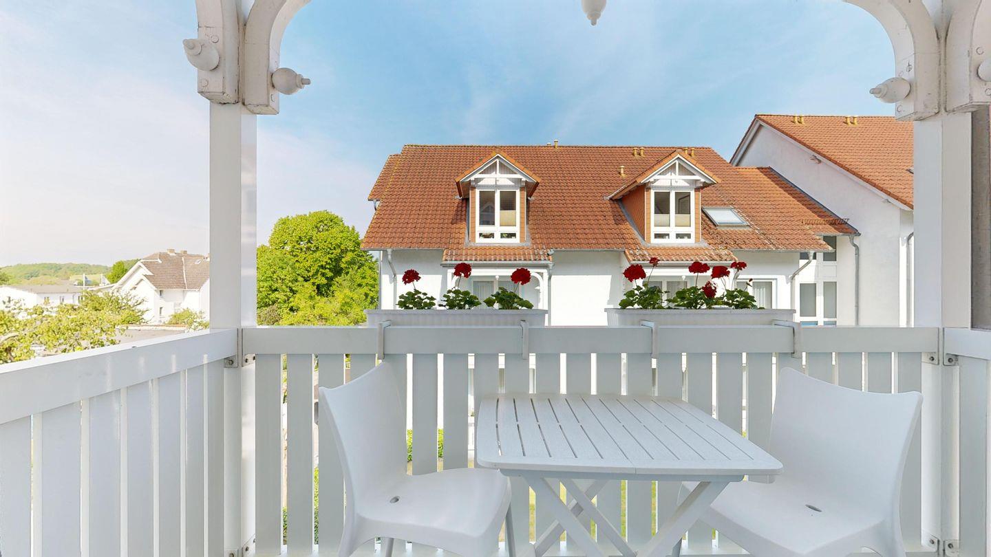 * möblierter Balkon