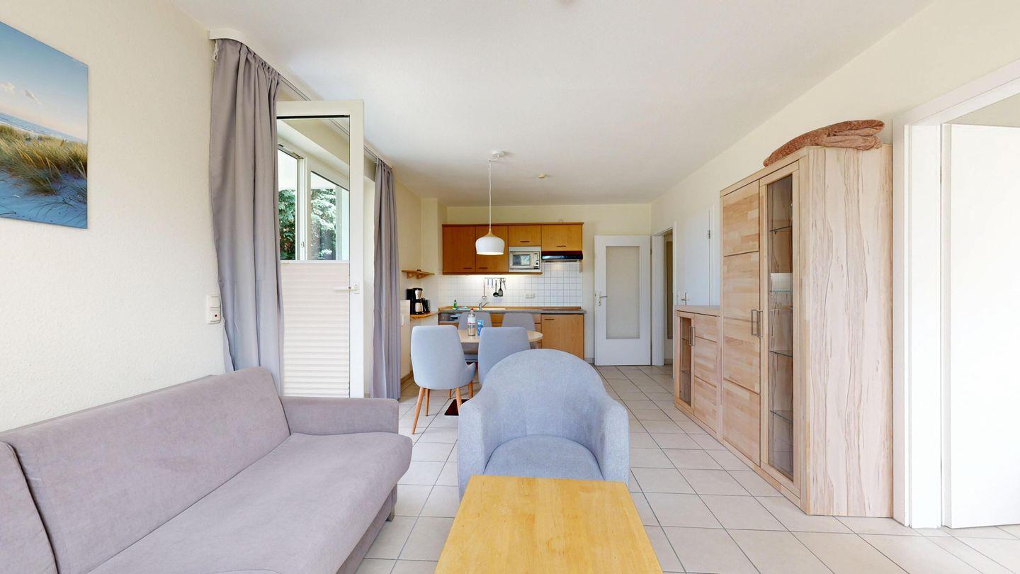 Ausstattung der Komfort-Ferienwohnung im EG, Typ B (2 Zimmer / 45 m²)