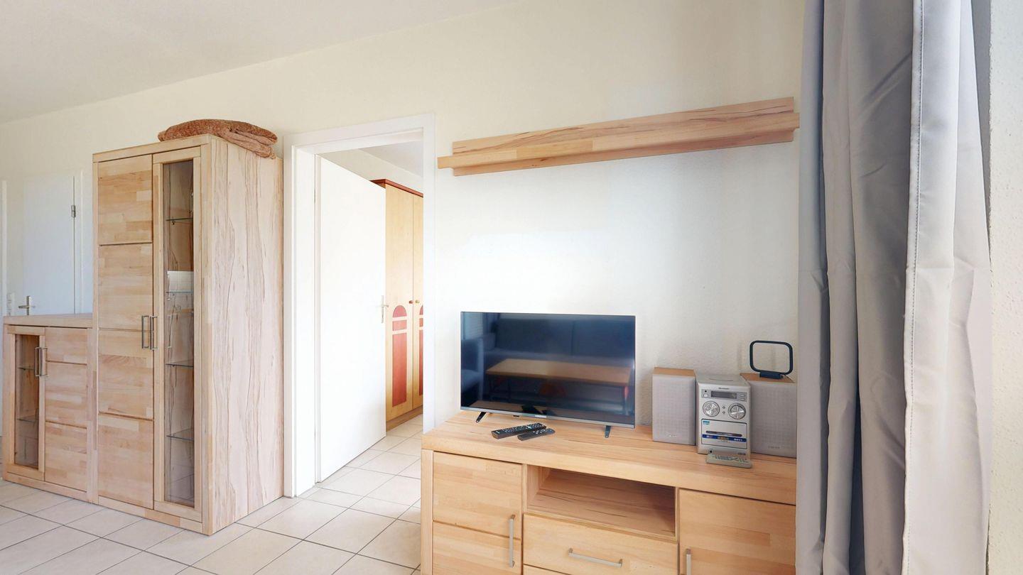 * Wohnzimmer: Couchgarnitur (Schlafgelegenheit für 2 Personen), Kabel-TV, Stereoanlage, Internetanschluss-WLAN, Esstisch