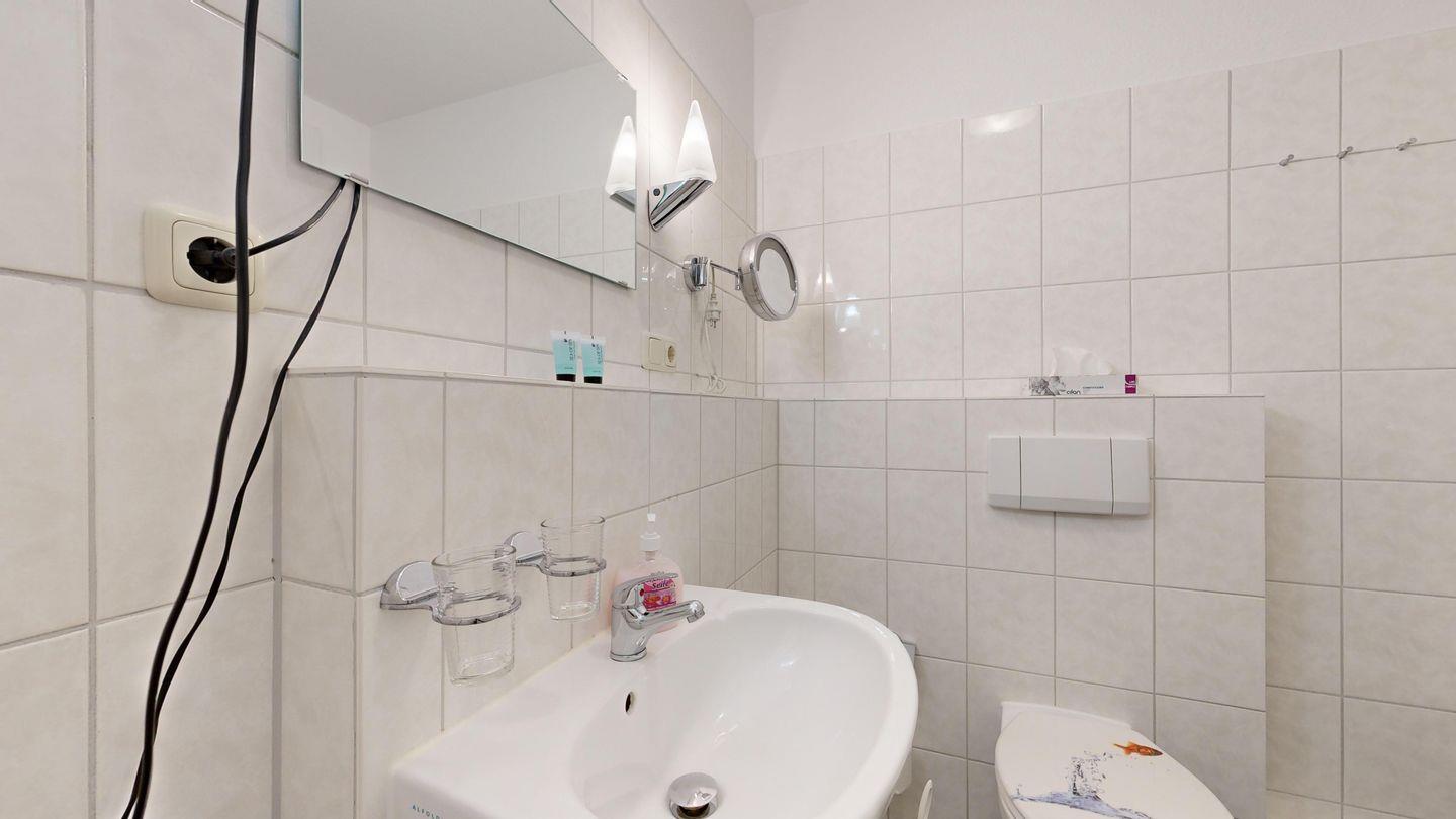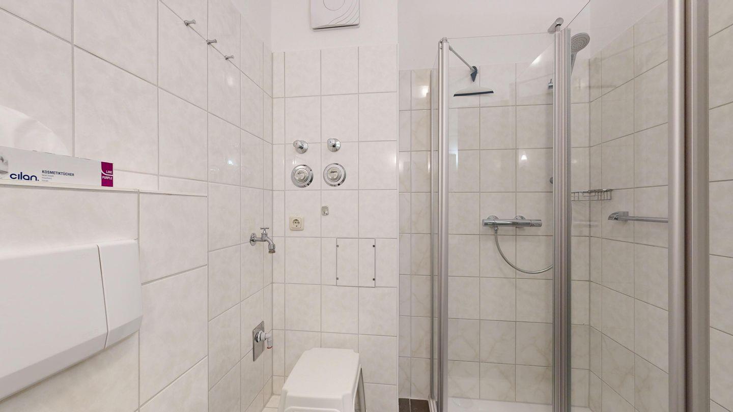 * Dusche (Tiefeinsteiger), WC, Haartrockner