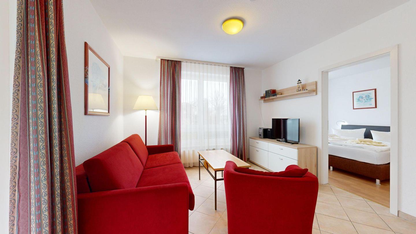 Ausstattung der Komfort-Ferienwohnung im EG, Typ B (2 Zimmer / 45 m²)