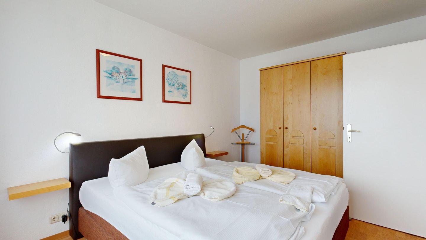 * 1 Schlafzimmer mit einem Boxspringbett (Doppelbett) und TV