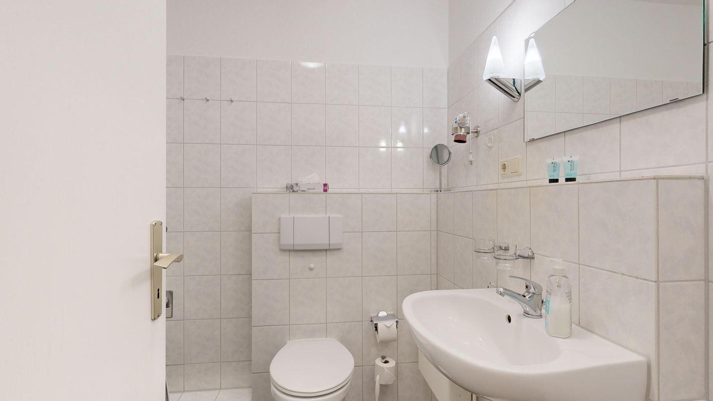 * Dusche (Tiefeinsteiger), WC, Haartrockner