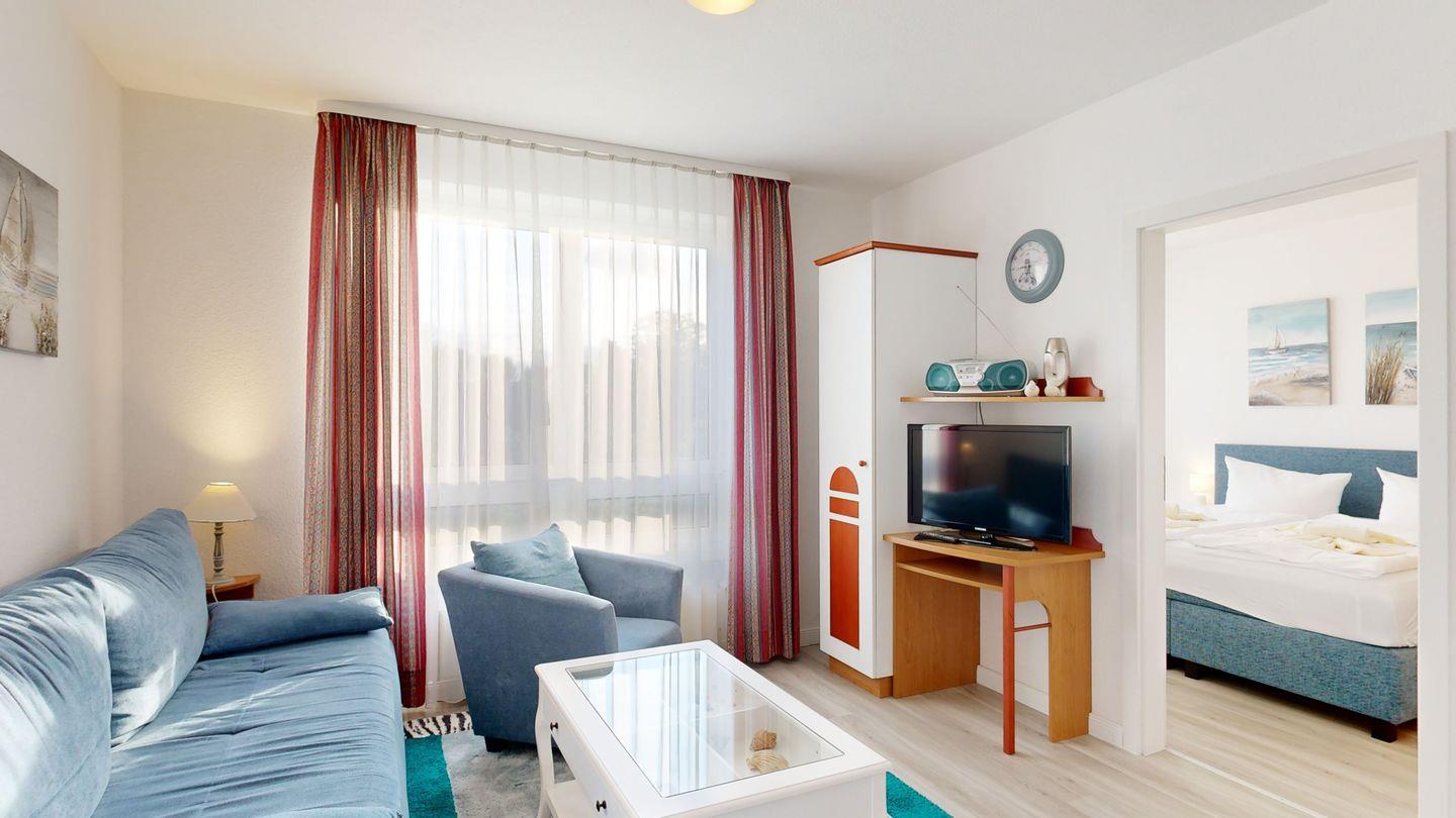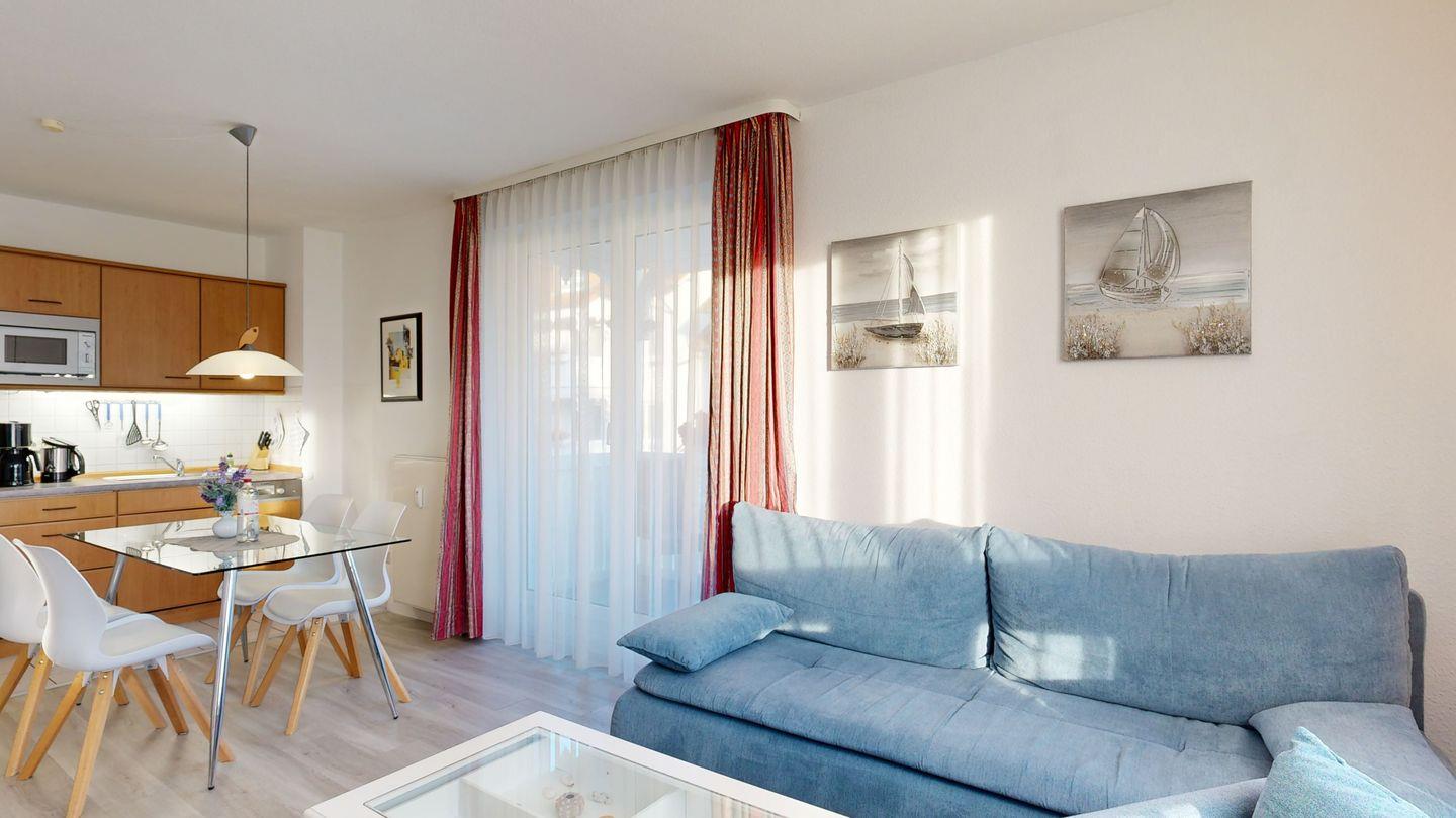 * Wohnzimmer: Couchgarnitur (Schlafgelegenheit für 2 Personen), Kabel-TV, Stereoanlage, Internetanschluss-WLAN, Esstisch