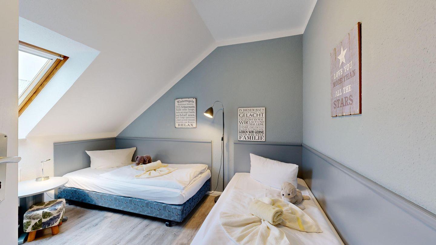 * 1 Schlafzimmer mit zwei Einzelbetten