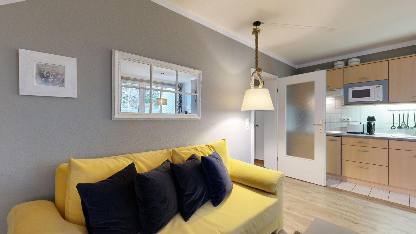 * Wohnzimmer: Couchgarnitur (Schlafgelegenheit für 2 Personen), 2 Sessel, Kabel-TV, Stereoanlage, Internetanschluss (WLAN), Esstisch und Schreibtisch