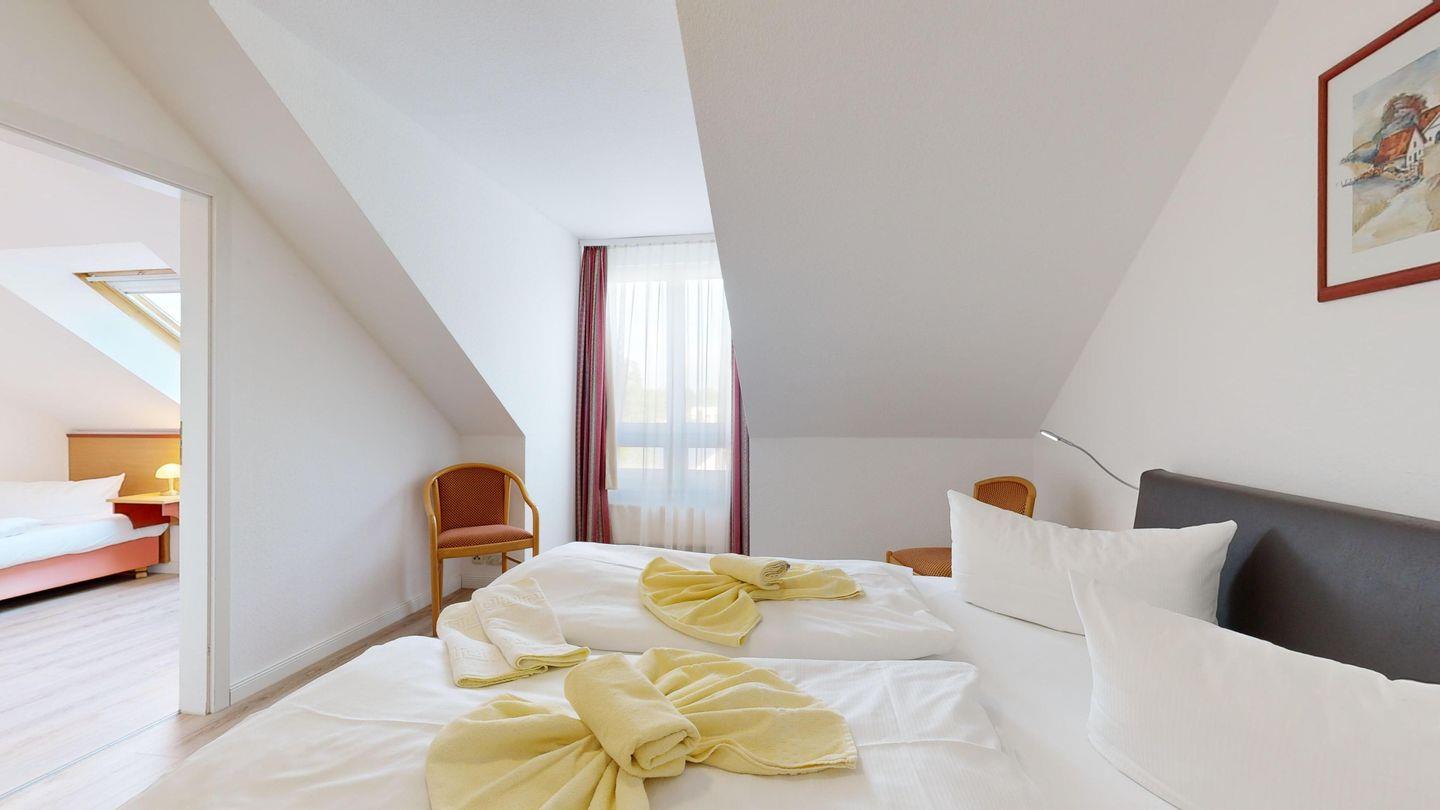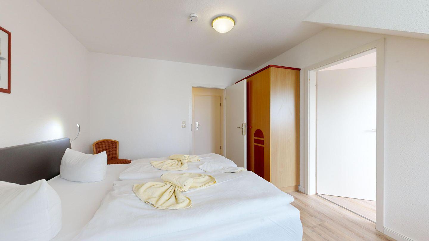 * 1 Schlafzimmer mit zwei Einzelbetten