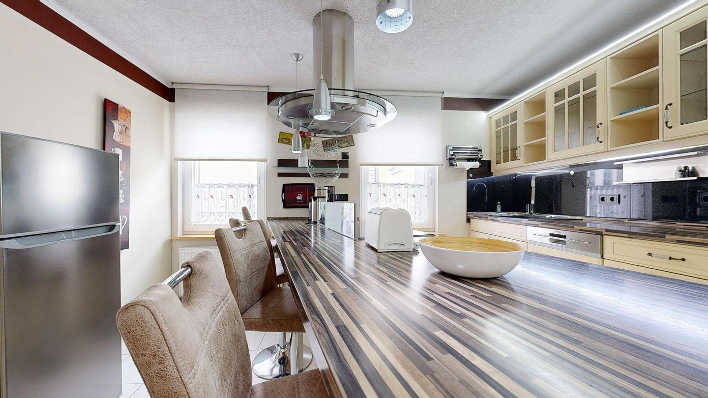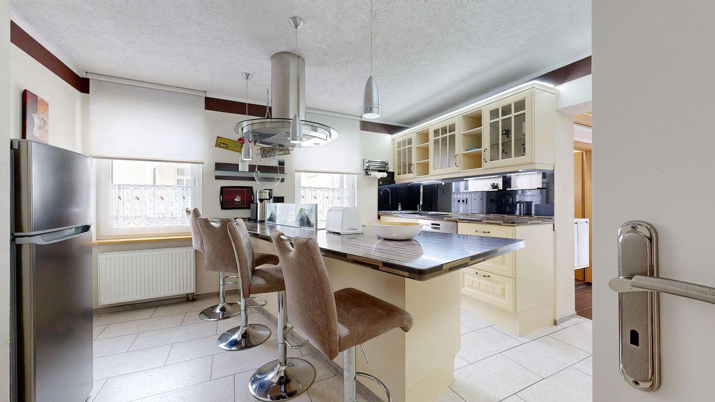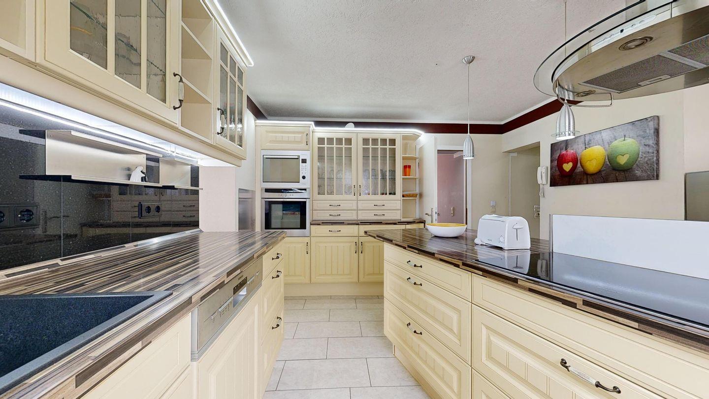 * Küche: Moderne Einbauküche mit Ceranherd und Backofen, Spülmaschine, Mikrowelle, Wasserkocher, Toaster, Kaffeemaschine, Essbereich