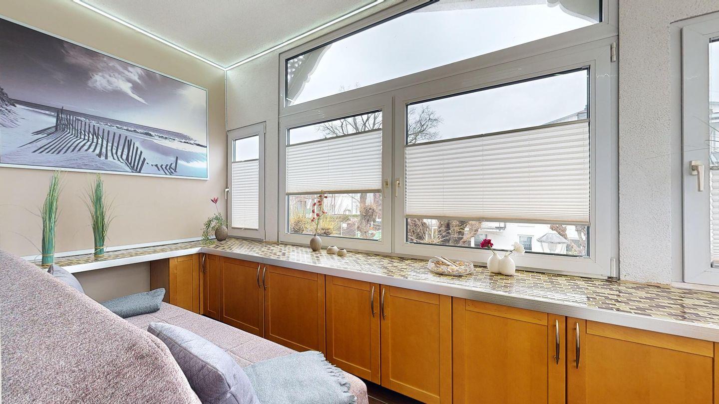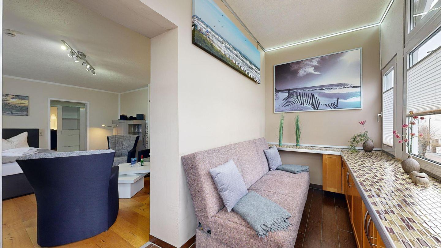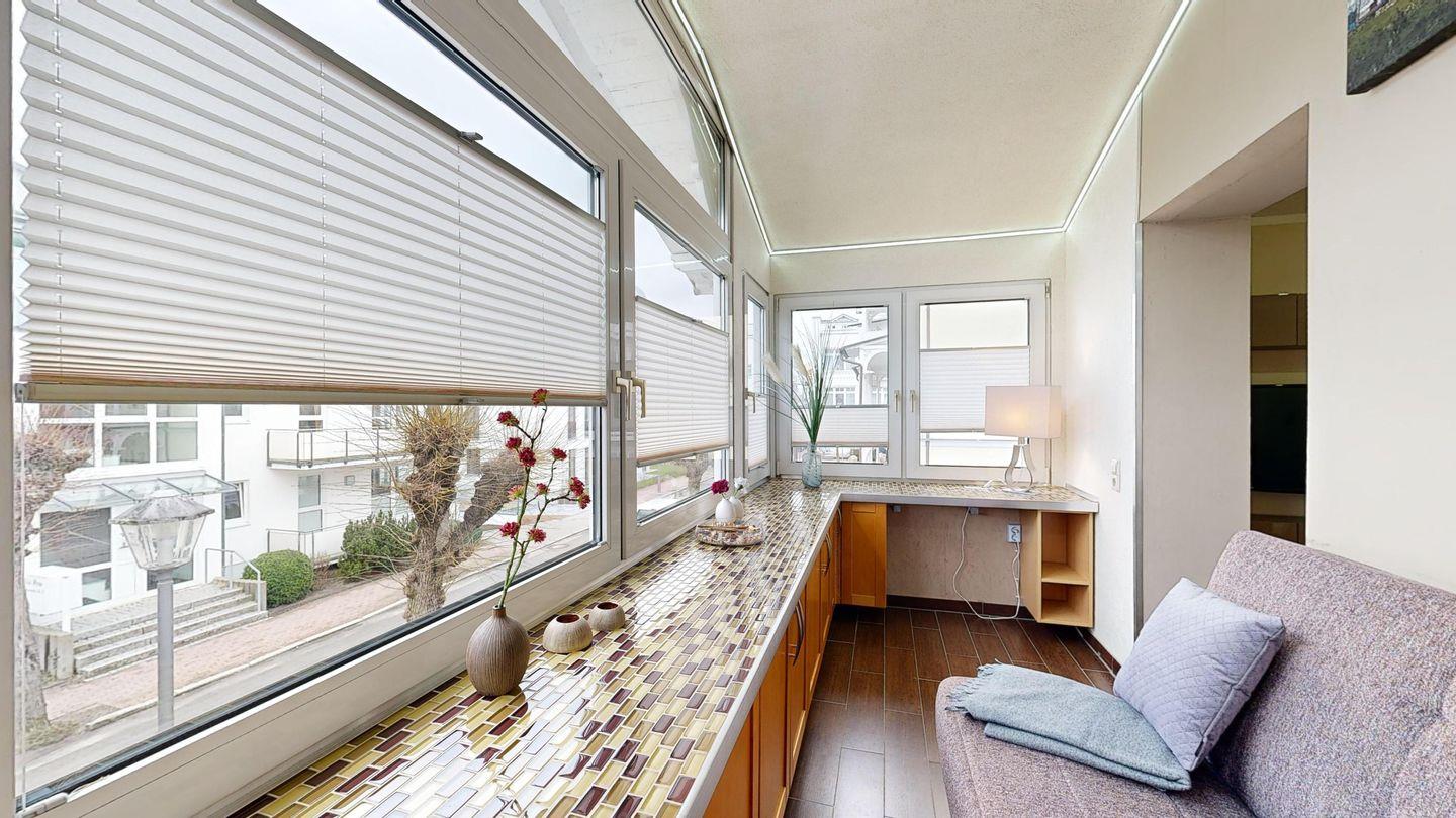 * Loggia mit einer Couch und Fußbodenheizung