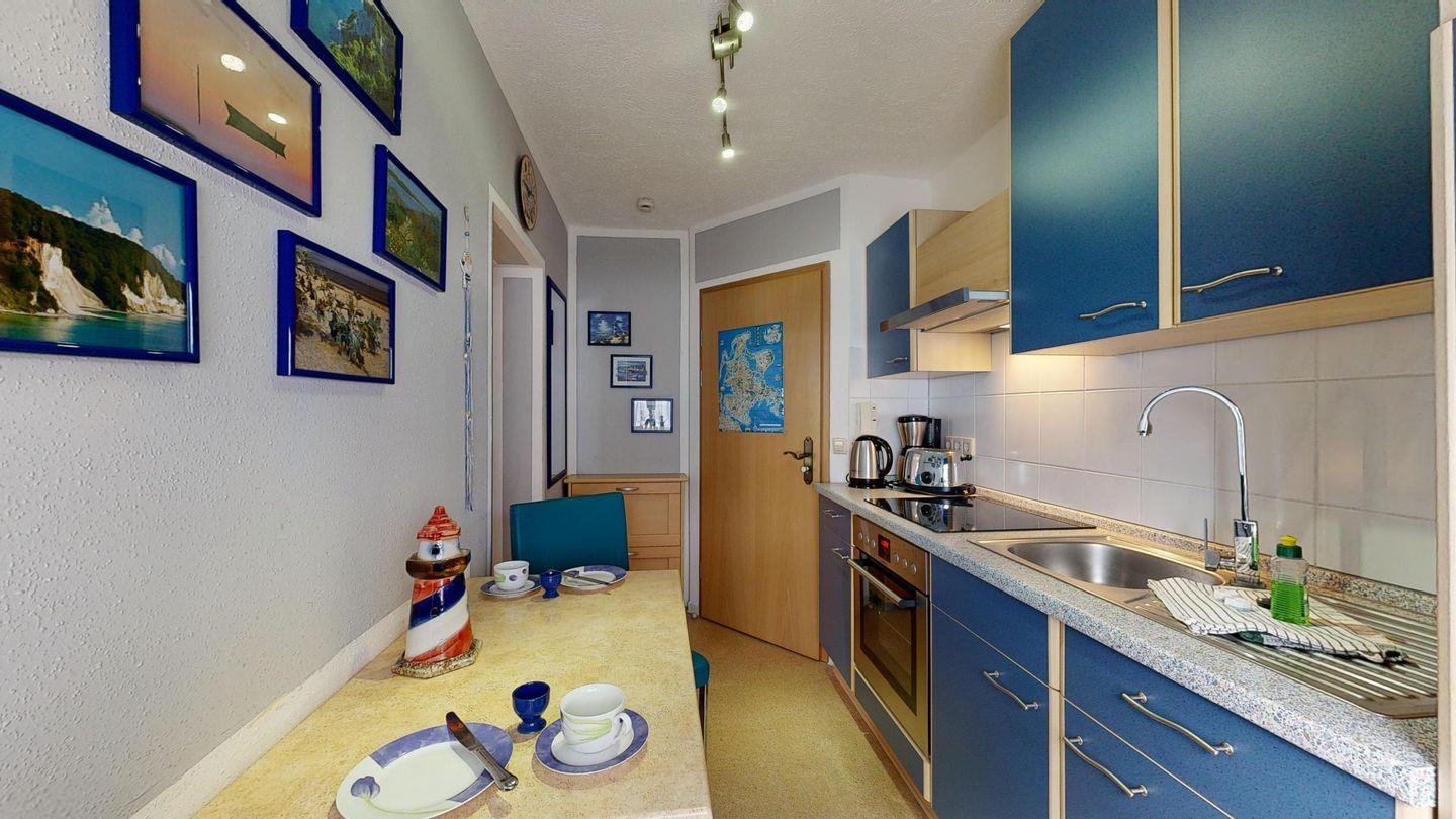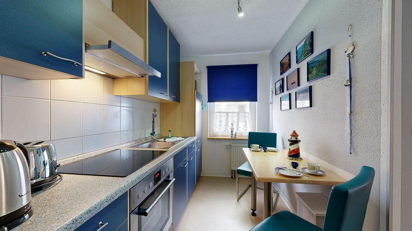 * Küche: Einbauküche mit Ceranherd, Backofen, Mikrowelle, Esstisch für 2 Personen