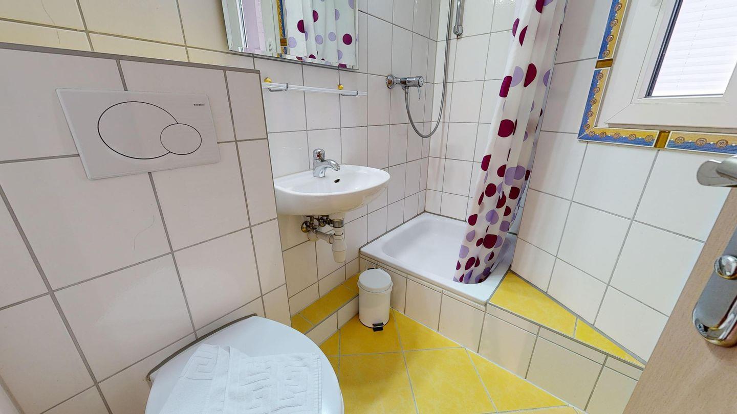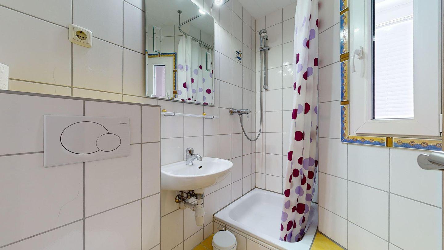 * 1 Badezimmer mit Dusche, WC und Föhn