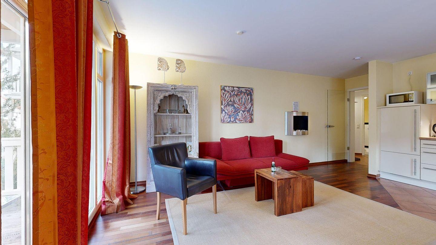 Für alle, die Meer und Natur gleichermaßen lieben: Diese stilvoll gestaltete Wohnung mit zwei Schlafzimmern liegt nur wenige Schritte vom Strand entfernt und schenkt Ihnen einen traumhaften Blick in den grünen Kurpark. Der eigene Strandkorb lädt zu entspannten Stunden am Meer ein. Einen entspannten Abend können Sie in der hauseigenen Sauna verbringen.
