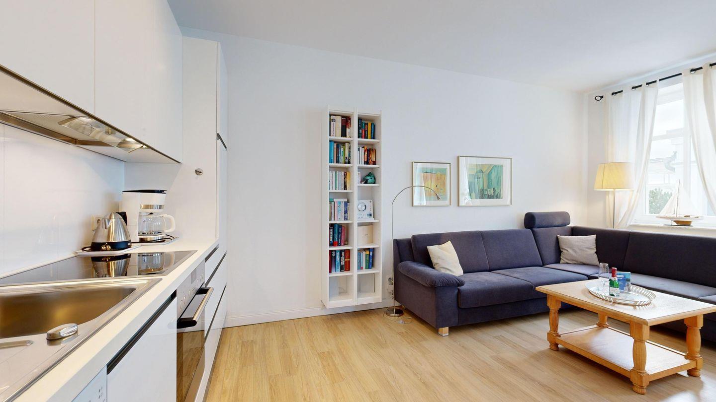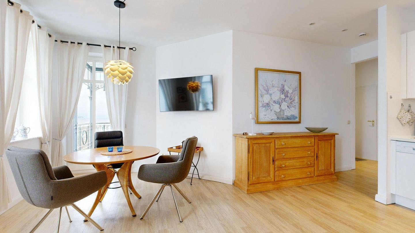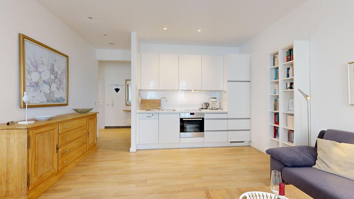 Ein herrlicher Meerblick und die hübsche Seebrücke erwarten Sie bereits vom Balkon – ein Ort, um morgens frische Ostseeluft zu atmen. Komfortable Sitzecke und Küchenzeile mit Spülmaschine sorgen für Wohlgefühl und Selbstversorger-Komfort. Direkter Zugang zum Strand rundet das Urlaubsgefühl stilvoll ab.