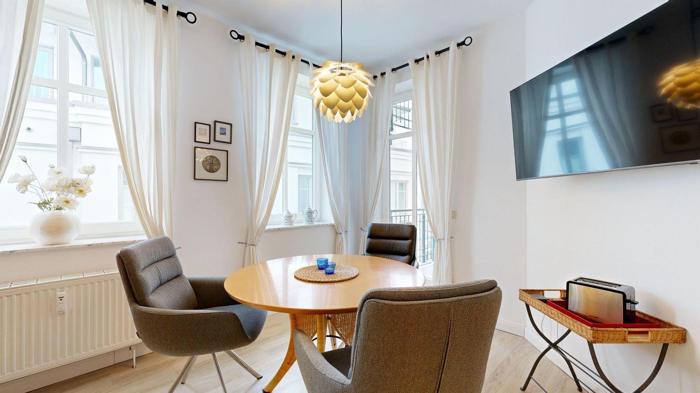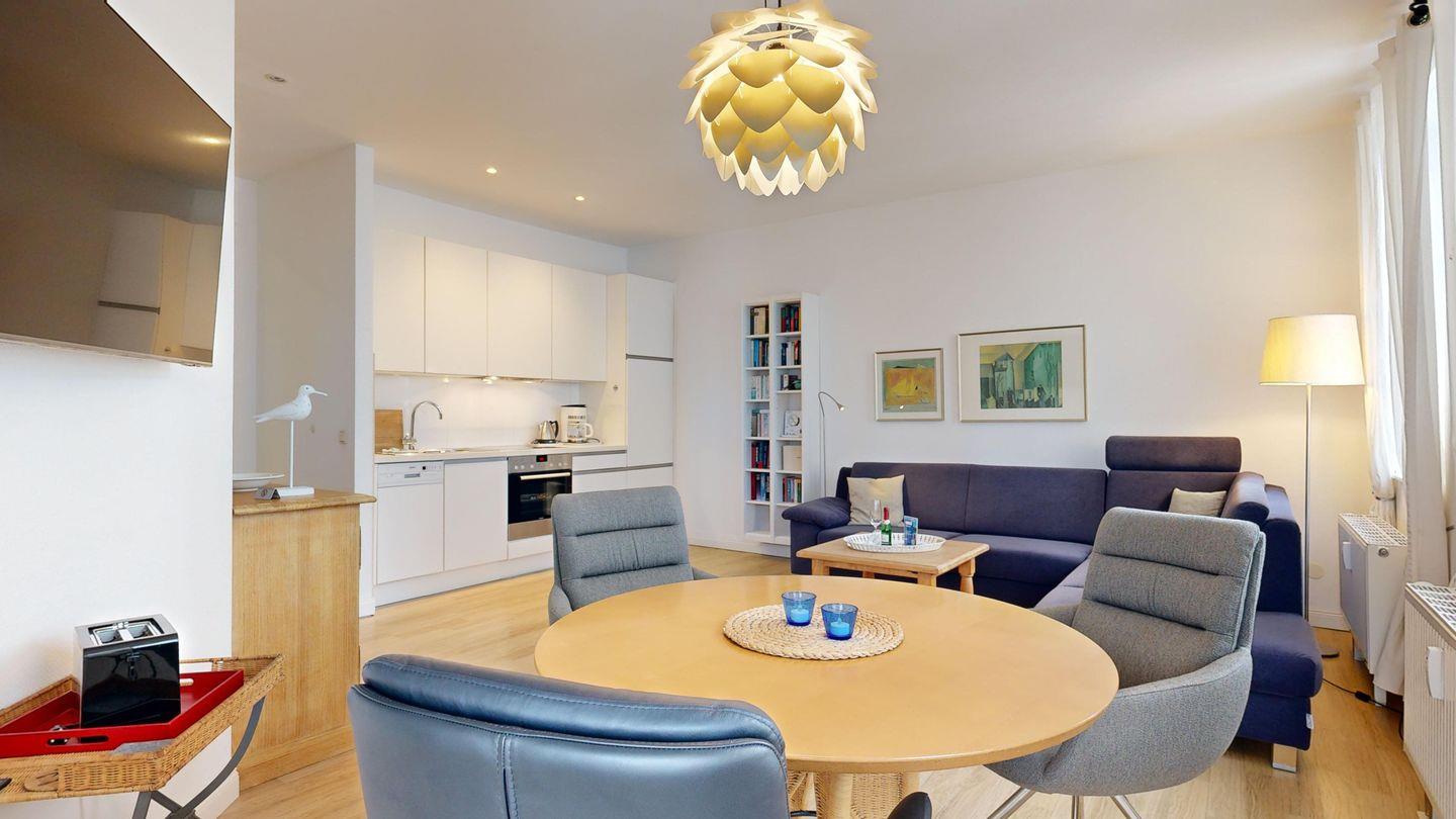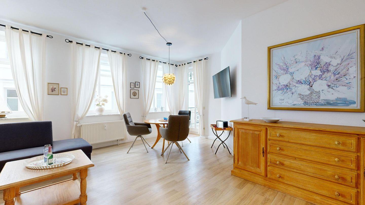 Ein herrlicher Meerblick und die hübsche Seebrücke erwarten Sie bereits vom Balkon – ein Ort, um morgens frische Ostseeluft zu atmen. Komfortable Sitzecke und Küchenzeile mit Spülmaschine sorgen für Wohlgefühl und Selbstversorger-Komfort. Direkter Zugang zum Strand rundet das Urlaubsgefühl stilvoll ab.