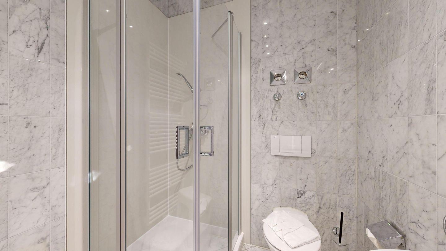 * 1 Badezimmer mit Dusche, WC und Föhn