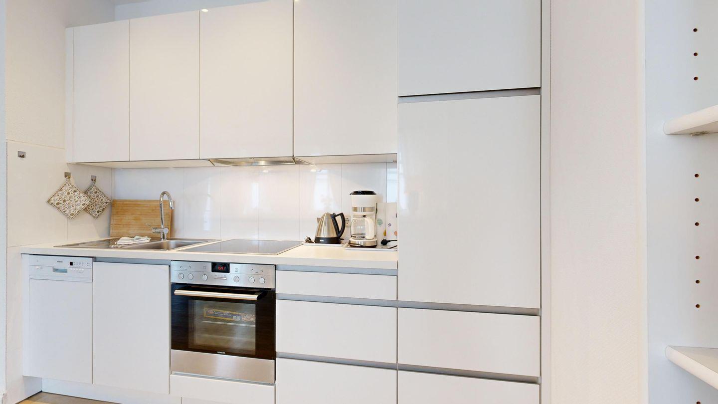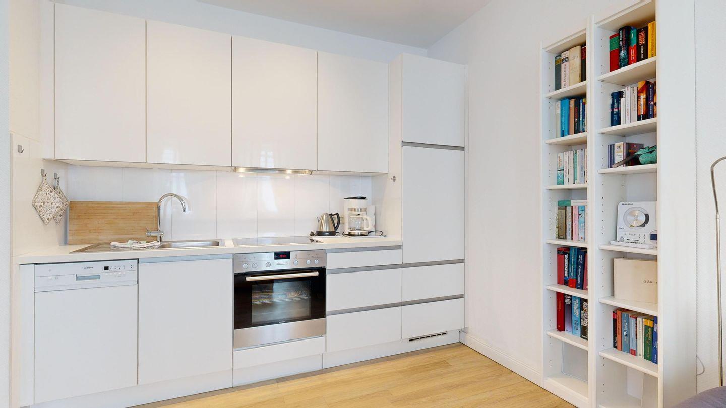 * Küche: Moderne Küchenzeile, E-Herd mit Backofen, Spülmaschine, Wasserkocher, Toaster und Nespresso-Maschine