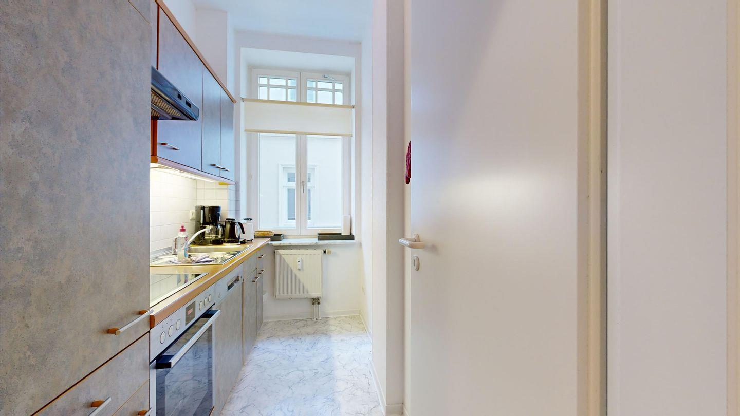 * Separate Küche: Moderne Küchenzeile, E-Herd mit Backofen, Spülmaschine, Kaffeemaschine, Wasserkocher und Toaster
