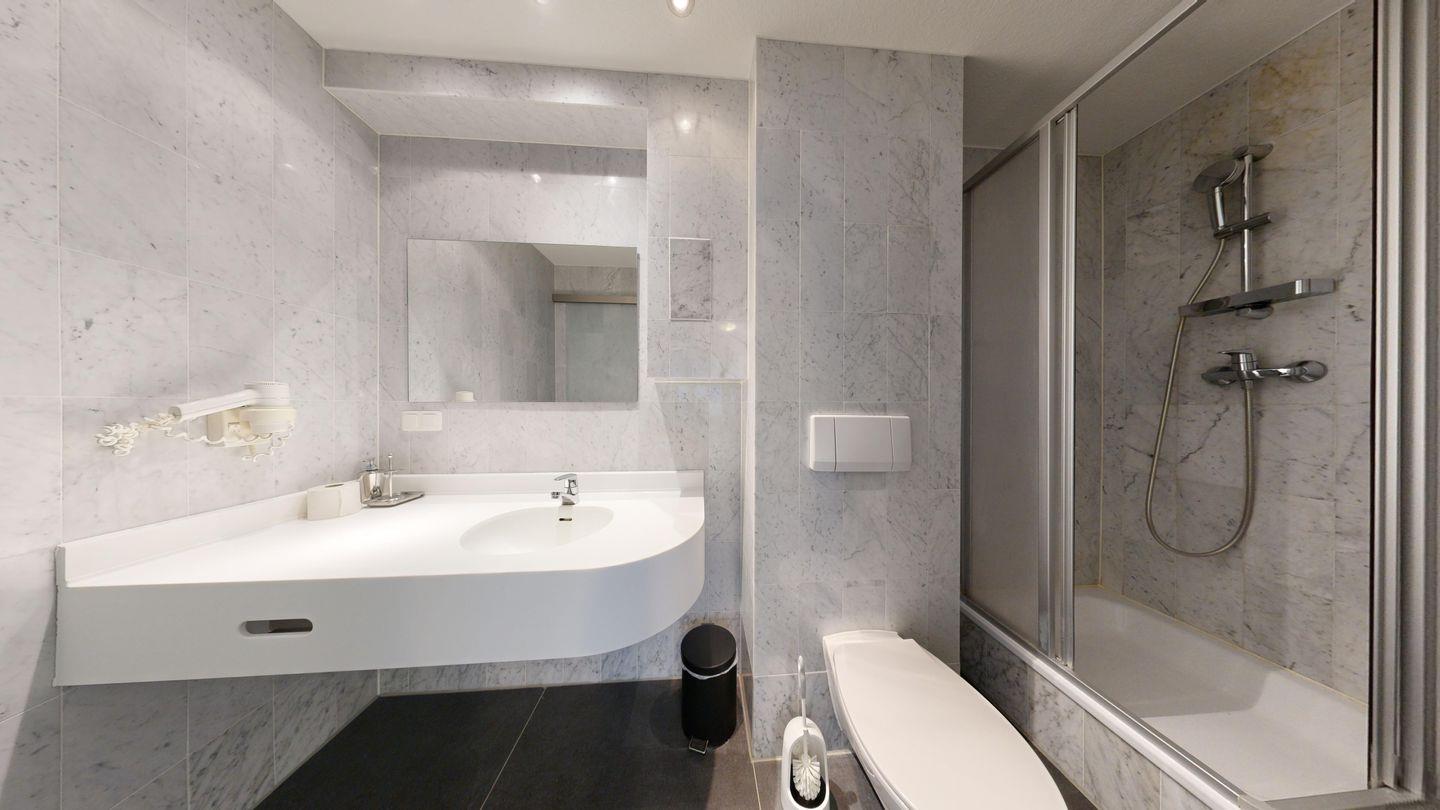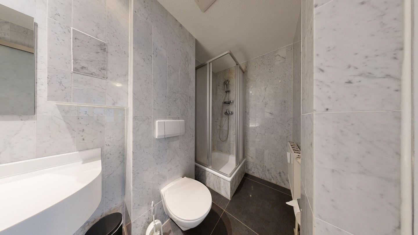 * 1 Badezimmer mit Dusche, WC und Föhn