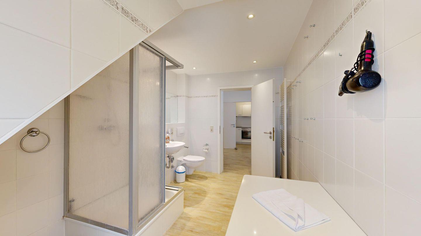 * 1 Badezimmer mit Dusche, WC und Föhn