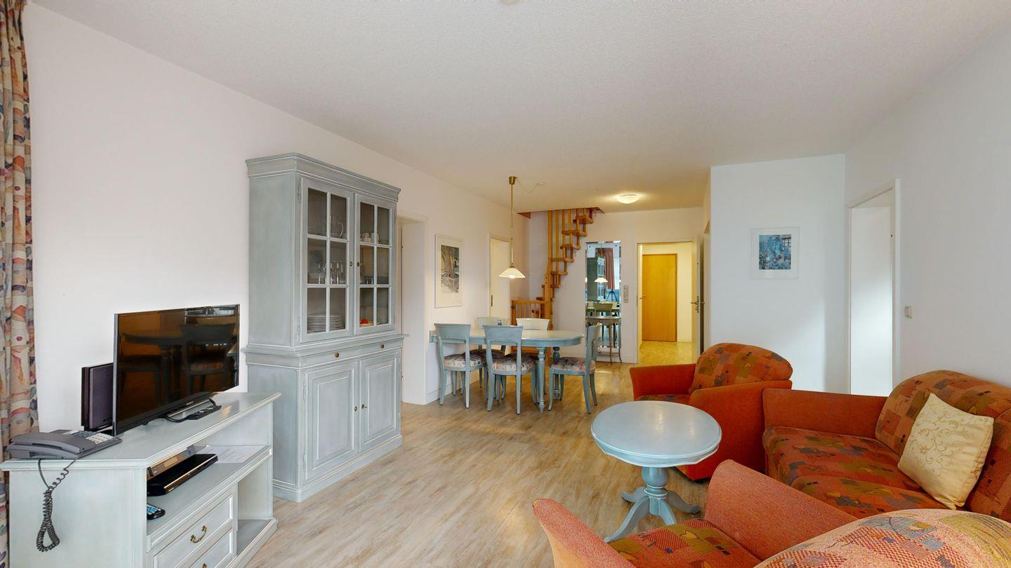 * Wohnzimmer: Couchgarnitur, Essplatz, Kabel-TV und Internetzugang (WLAN oder Kabel möglich)