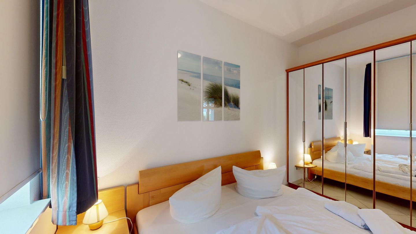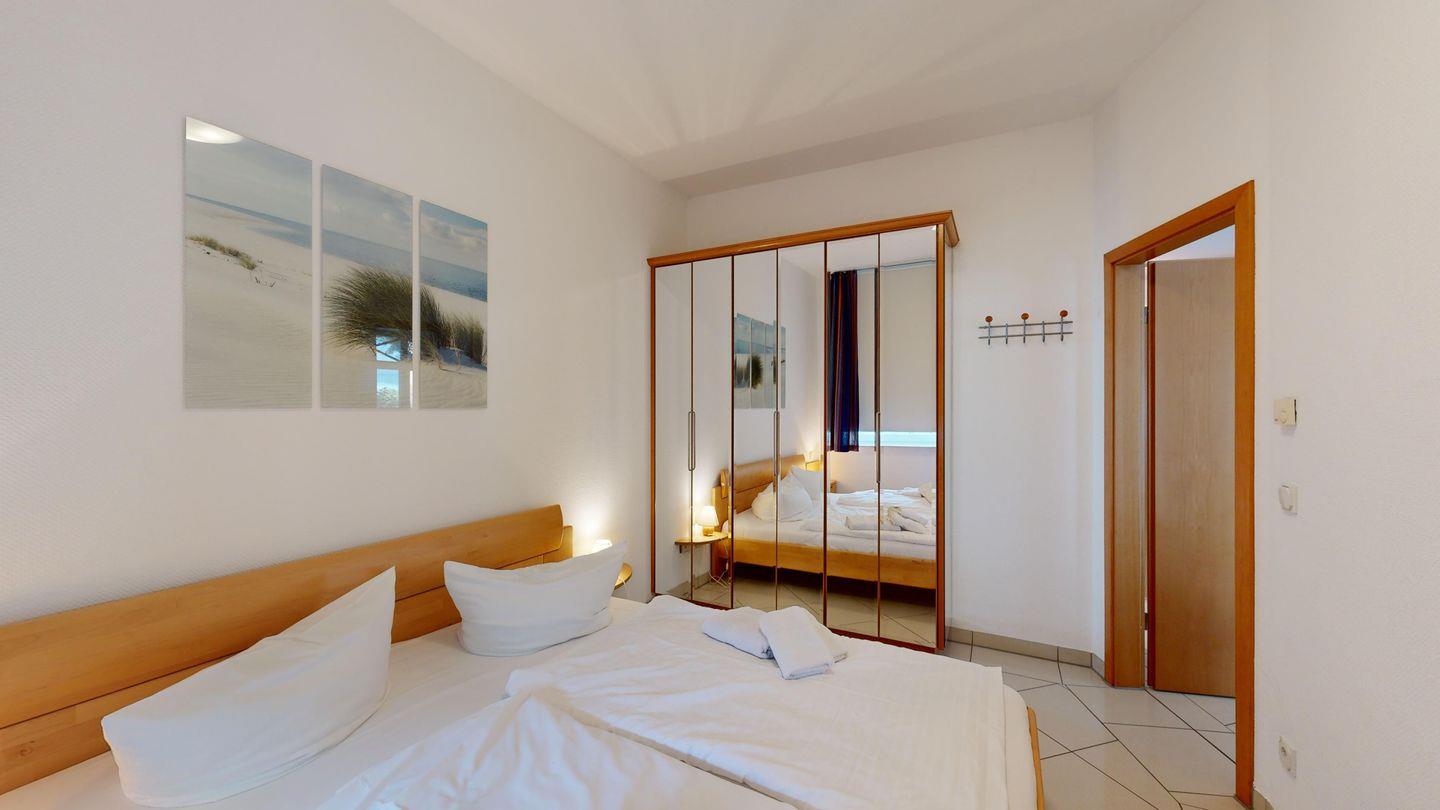 * 1 Schlafzimmer mit einem Doppelbett, 1,80 x 2,00 m getrennte Matratzen