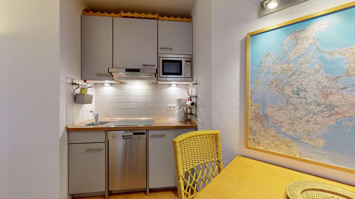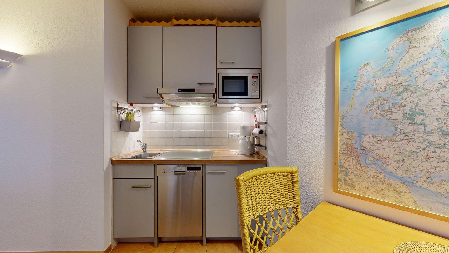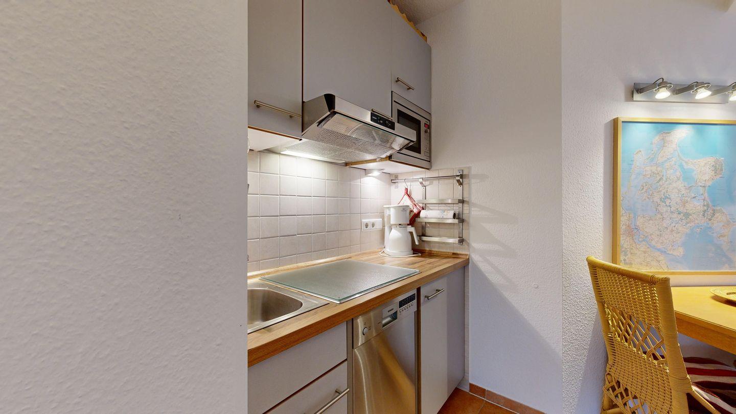 * Küche: Moderne Küchenzeile, E-Herd, Spülmaschine, Mikrowelle, Wasserkocher, Kaffeemaschine und Toaster
