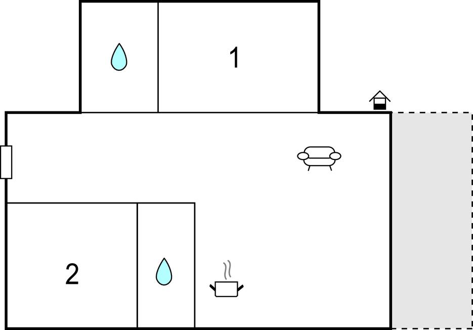 Badeværelse 6m2 (nr. 1) - WC. Varmt og koldt vand. Bruser
