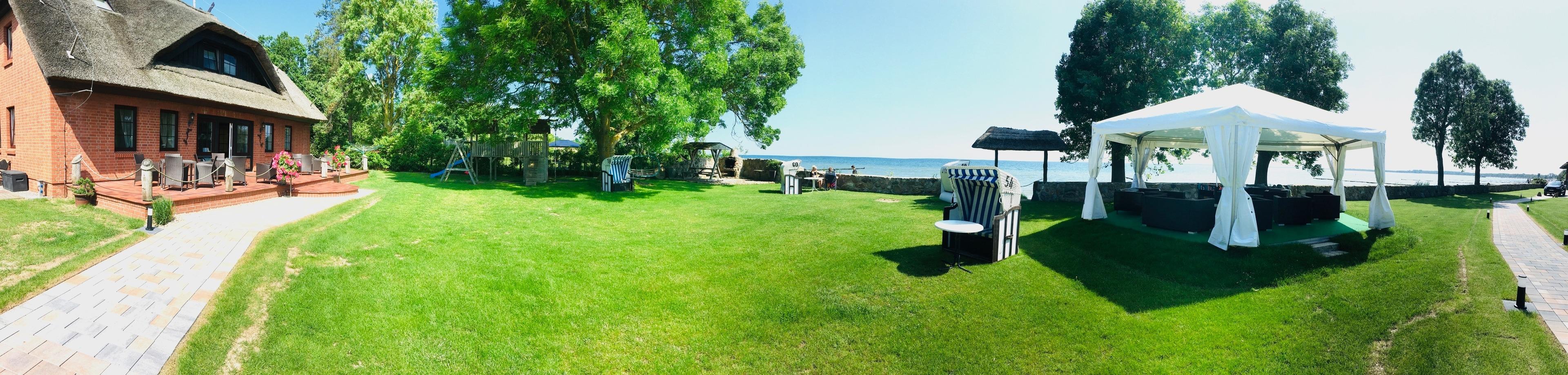 Besonders erholungssuchende Paare und Familien werden die Großzügigkeit unseres Grundstückes zu schätzen wissen. Auf unseren 2000qm großem Gartengrundstück finden Sie alles um einen ungestörten Strandtag zu verbringen. Die Lounge Terasse lädt schon am morgen zu einem aussergewöhnlichen Frühstück mit 180 Grad Meerblick ein. Jede Wohnung hat im Gartenbereich ihren eigenen Strandkorb und im Loungebereich mit Gartenkamin findet man auch jederzeit ein beschauliches Plätzchen. Eine Natursteinmauer mit eingebautem Gartenkamin begrenzt das Grundstück hin zum Strand und sorgt so für eine angenehme ungestörte Ruhe.