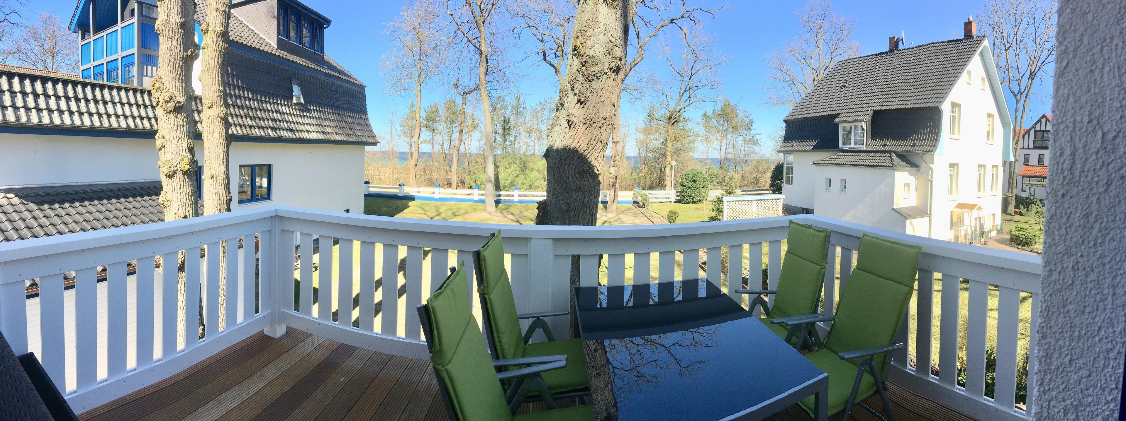 Das moderne Bad mit Regendusche und ein großer Balkon mit Meerblick runden diese schöne Ferienwohnung ab.