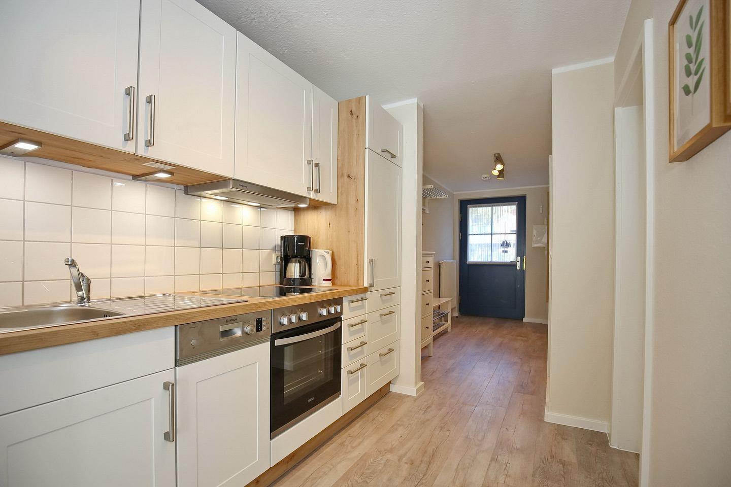 Die freundliche 2-Zi.-Wohnung mit südlicher Ausrichtung liegt im Erdgeschoss am Ende des Hauses 15. Auf einer Fläche von ca. 55 m² bewohnst du einen Wohn- und Essbereich, ein Schlafzimmer, eine Küchenzeile und ein Duschbad. Zum Strand sind es von der Ferienanlage Papillon etwa 250 m.