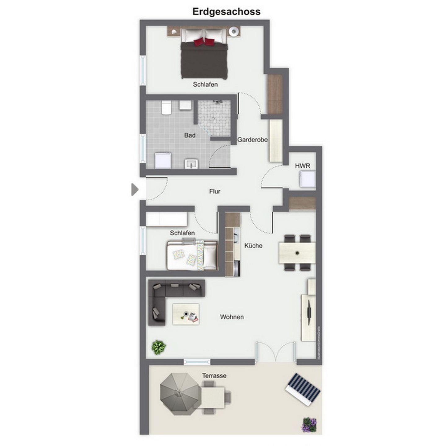 Im gemütlich eingerichteten Wohnzimmer lädt das Ecksofa zum entspannten TV-Abend ein. Für deine Unterhaltung stehen Flachbild-TV, DVD-Player, CD-Player und ein Radio bereit. WLAN (ohne Gewähr) kannst du hier kostenfrei nutzen. Vom Wohnzimmer aus gelangst du auf die Süd-West-Terrasse. Hier findest du während der Saison Terrassenmöbel und Sonnenschirm vor.