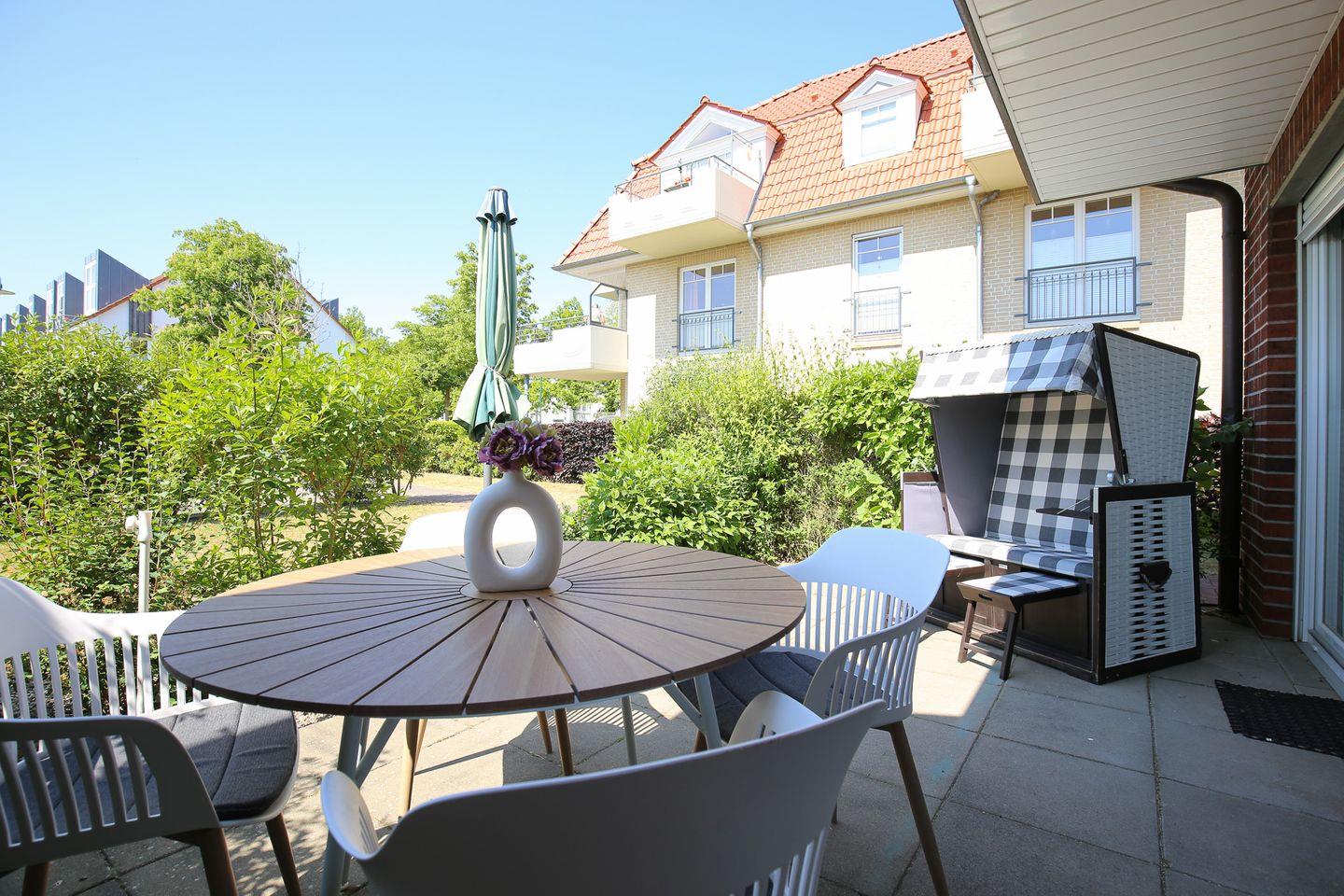 Bis zu 4 Personen kannst du in der modernen Ferienwohnung Malaga 01 deinen strandnahen Ostseeurlaub erleben. Sie ist ca. 65 m² groß. Du bewohnst das offen gestaltete Wohnzimmer mit Küchenzeile und Essbereich, zwei Schlafzimmer, ein Duschbad und die Süd-West-Terrasse. Zum Strand sind es ca. 250 m.
