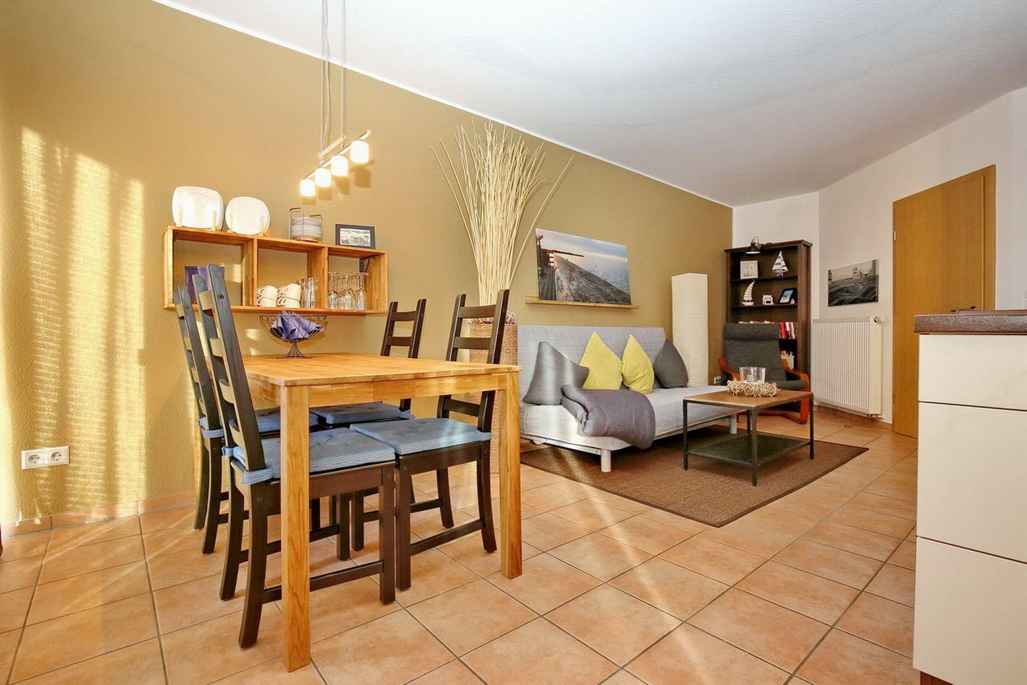 Mit ihrer strandnahen Lage ist die Ferienwohnung Malaga 07 genau richtig für deinen Ostseeurlaub mit 5 Personen. Auf 63 m² hast du im Wohnzimmer mit Küchenzeile und Essbereich, in den zwei Schlafzimmern, im Duschbad und auf der Süd-West-Terrasse ausreichend Platz für alle Mitreisenden.