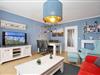 Vom Wohnbereich aus gelangst du auf die möblierte Terrasse. Eine kleine Hecke dient als Sichtschutz. Im lichtdurchfluteten Wohnzimmer befinden sich eine bequeme Couchgarnitur und der Essbereich. Zur Unterhaltung stehen dir sowohl ein Flachbild-TV, eine Stereoanlage sowie eine Auswahl an Büchern und Spielen zur Verfügung.