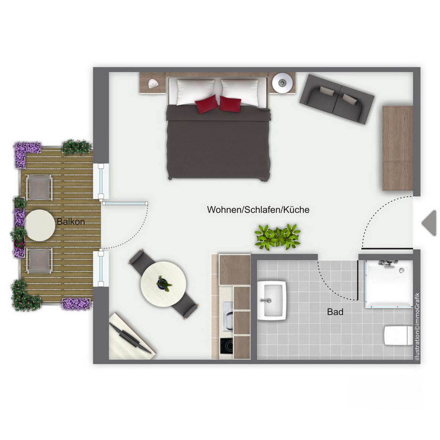 Die 1-Zimmer-Wohnung in der Strandvilla Krabbe mit 30 qm bietet Platz für bis zu 2 Personen. Der Balkon ist südlich ausgerichtet. WLAN (ohne Gewähr) steht Ihnen kostenfrei zur Verfügung.