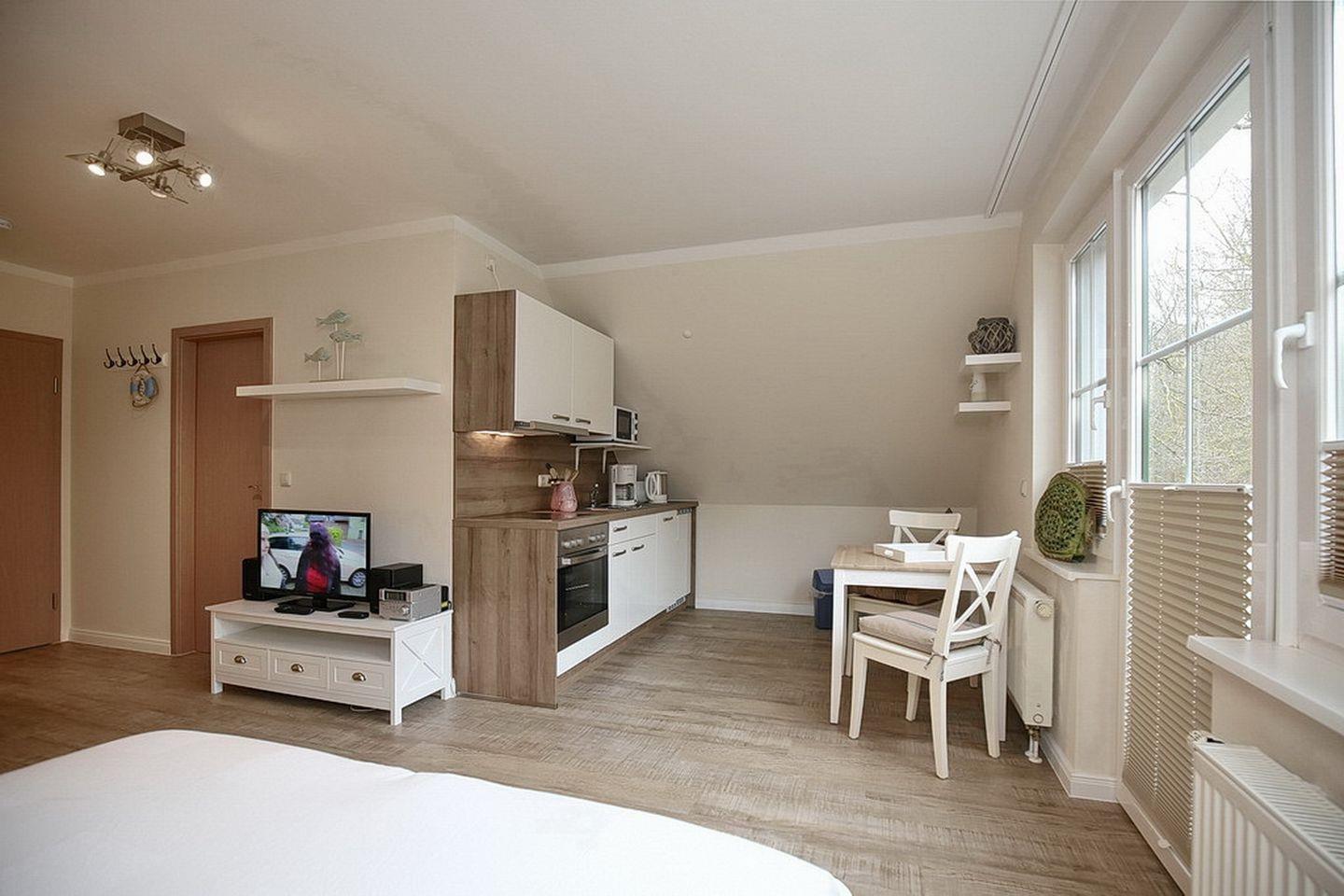Die Ferienwohnung Nr. 14 in der Strandvilla Krabbe ist eine 1-Zimmerwohnung für bis zu 2 Personen.