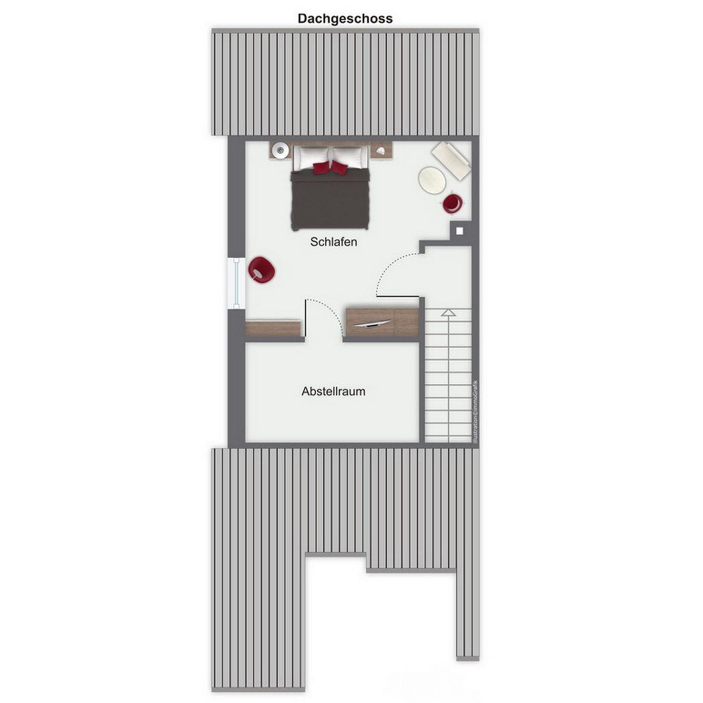Im Erdgeschoss befindet sich ein Schlafzimmer mit 2 Einzelbetten (je 90 x 200 cm). Ein weiteres, geschmackvoll eingerichtetes Schlafzimmer mit Doppelbett (2 x 100 x 200 cm), großem Kleiderschrank und Sat/TV befindet sich im Obergeschoss. Für die kleinsten Gäste steht ein massives Baby-/Kinderbett sowie ein Bollerwagen bereit.