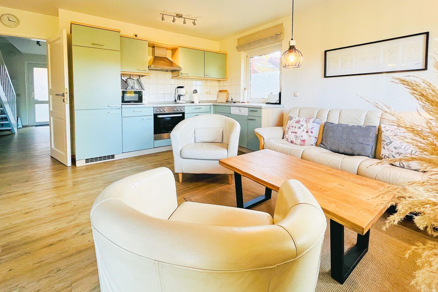 Das 2024 frisch renovierte Ferienhaus bietet dir mit 3 Zimmern auf 2 Ebenen auf ca. 63 m² viel Platz im Urlaub. Es ist bis zu 4 Pers. ausgestattet. Das Haus hat ein Wohnzimmer mit Küchenzeile, eine westlich ausgerichtete Terrasse, 2 Schlafzimmer und 2 Bäder. Zum Strand sind es vom Urlauberdorf nur ca. 350 Meter.