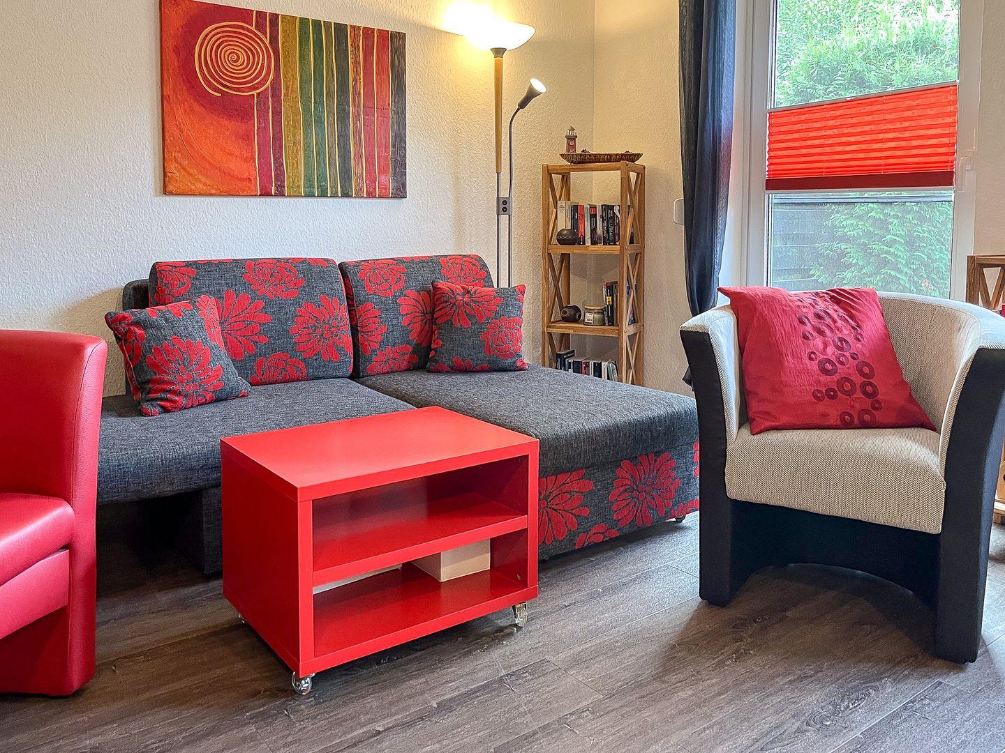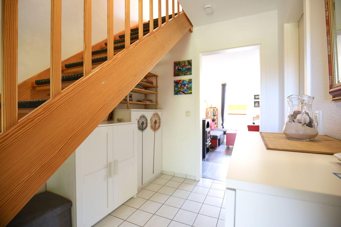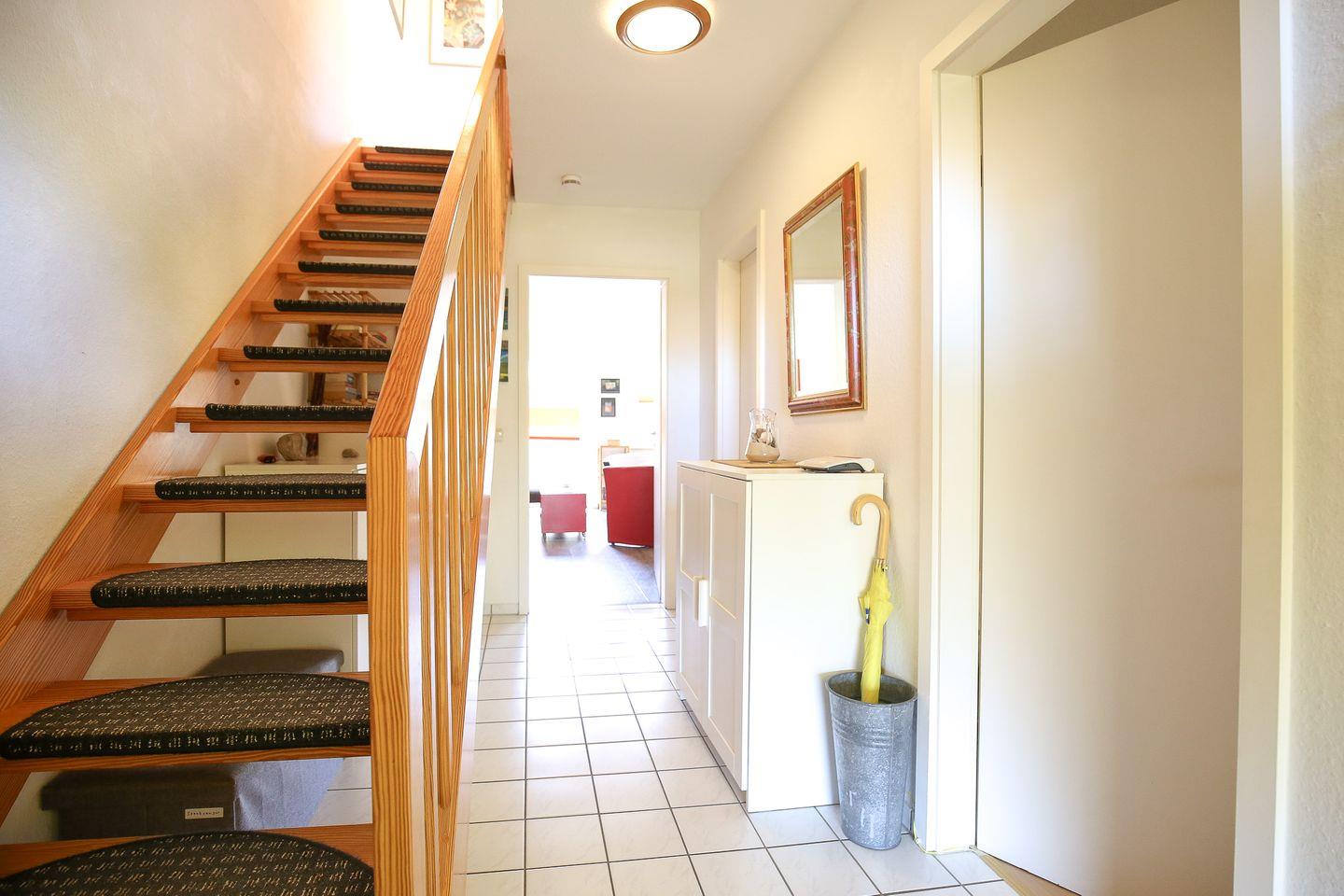 Im Wohnzimmer deines Ferienhauses sorgen ein Flachbildfernseher und eine Stereoanlage für Unterhaltung. Die süd-westlich gelegene, möblierte Terrasse ist von dem Wohnzimmer aus betretbar. In einem Strandkorb kannst du am Abend bei einem Glas Wein die Eindrücke des Tages auf dich wirken lassen und die angenehme Wärme eines Terrassenofens genießen. Eine zweite Terrasse in Richtung Osten lädt bei schönem Wetter zum Frühstück in der Morgensonne ein.