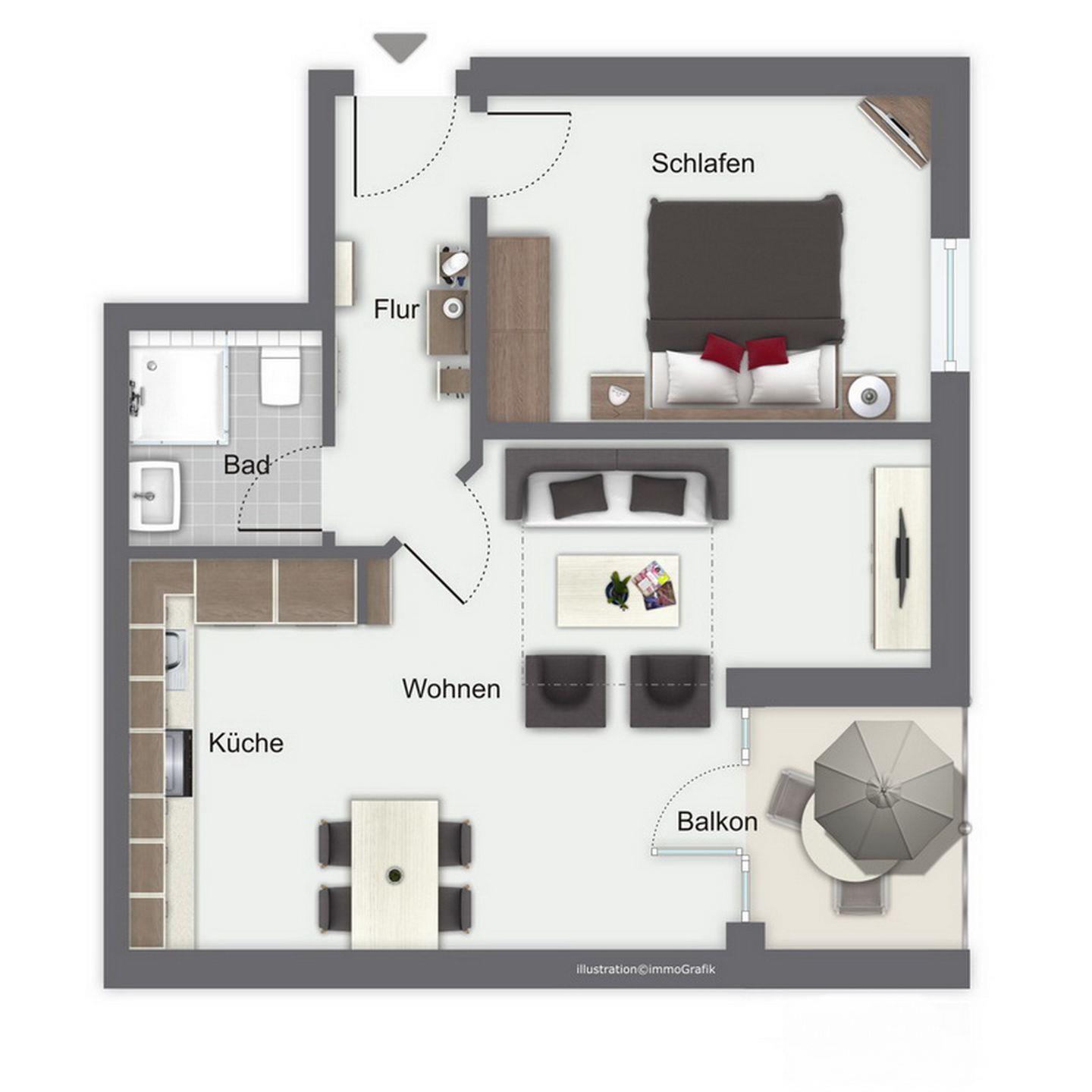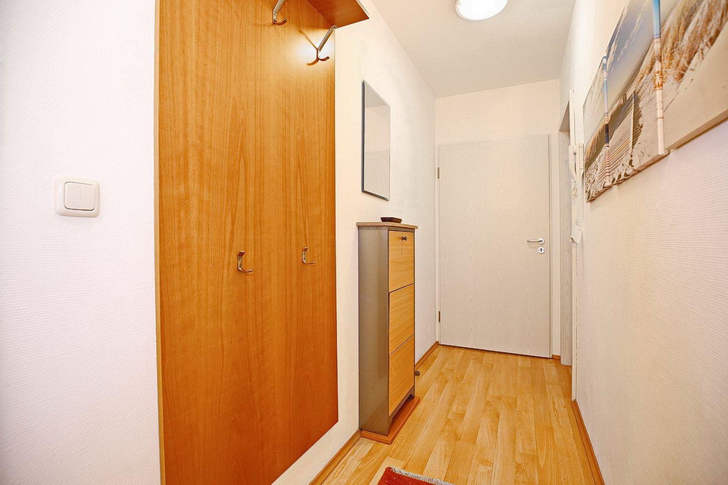 In dieser 44 m² großen, mit Laminat ausgelegten Ferienwohnung erwartet dich ein helles, freundlich ausgestattetes Wohn- und Esszimmer mit Einbauküche und Zugang zum Balkon in Richtung Ostsee, ein Schlafzimmer und ein gefliestes Duschbad. In der Wohnung sorgen moderne Farben und ein harmonischer Stil für eine gemütliche Atmosphäre. Zum Strand sind es nur ca. 100 m.
