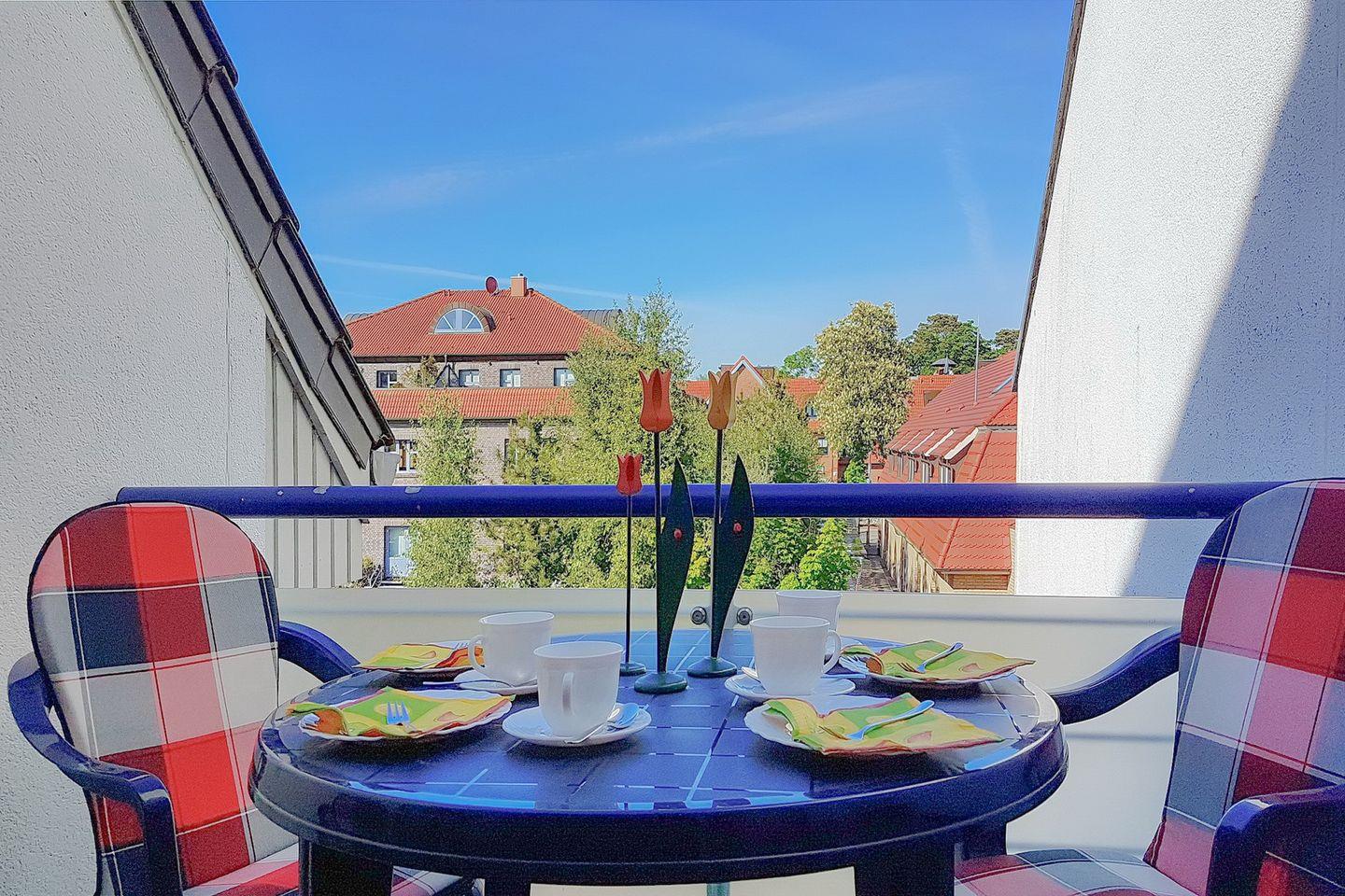 Die Ferienwohnung 11 in der Ferienanlage Haffblick ist eine schöne 2-Zimmer-Wohnung für bis zu 4 Personen. Die Ferienwohnung liegt im 2. OG und hat einen Balkon. Es stehen Ihnen Münzwaschmaschinen zur Verfügung.