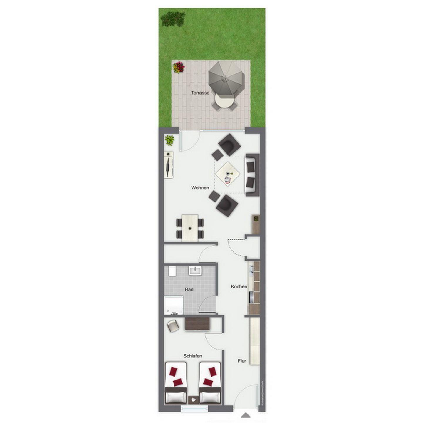 Dein liebevoll eingerichtetes Urlaubsquartier auf ca. 55 m² ist die Ferienwohnung „Strandlöpper“. Die 2-Zi. Erdgeschosswohnung hat einen Wohn-und Essbereich mit Süd- West Terrasse, ein Schlafzimmer, eine Küchenzeile und ein Duschbad. Die Strandentfernung beträgt von der Ferienanlage Papillon nur ca. 250 m.