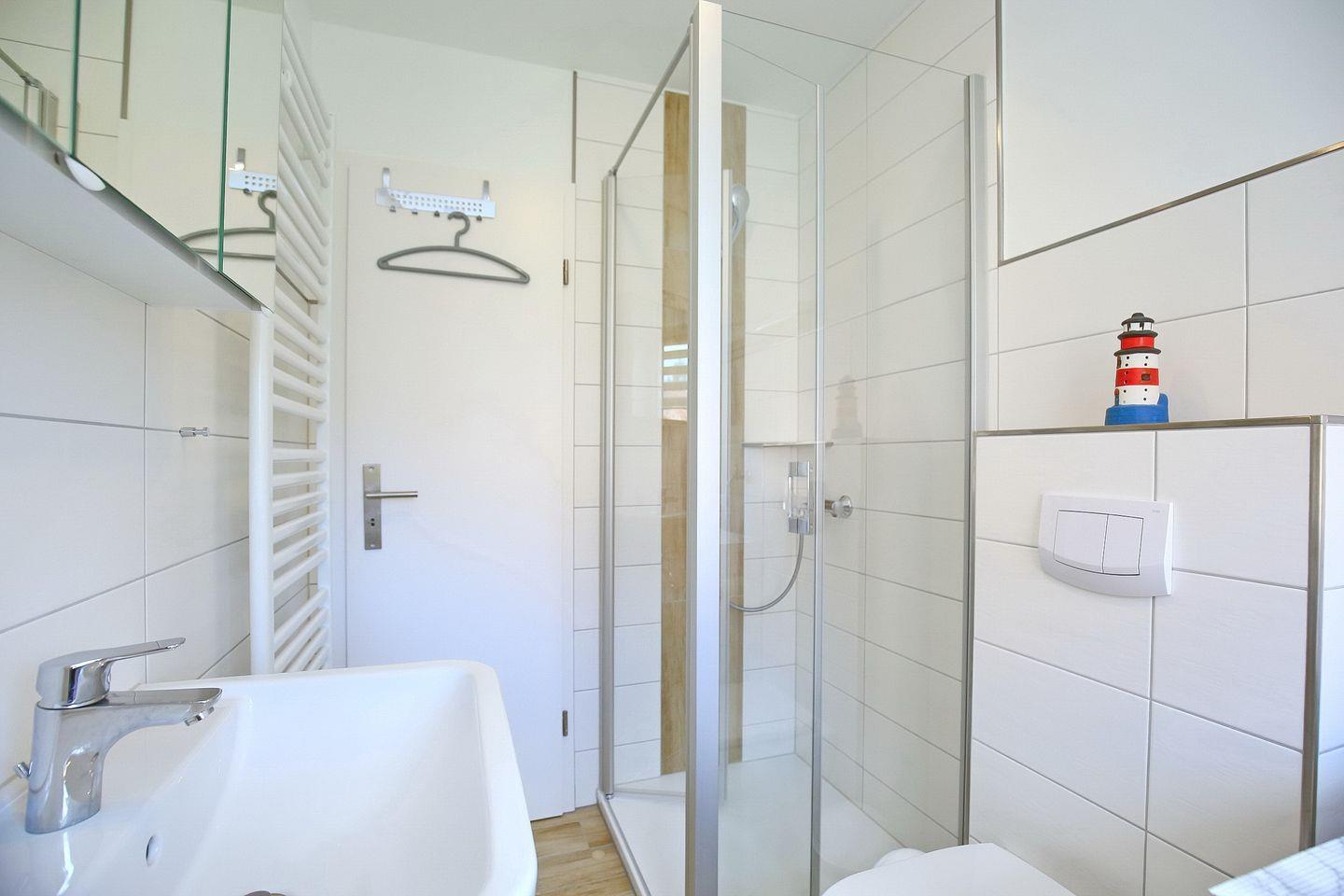 Das Ferienhaus verfügt über ein Duschbad (im Erdgeschoss), in dem du auch einen Föhn finden kannst.