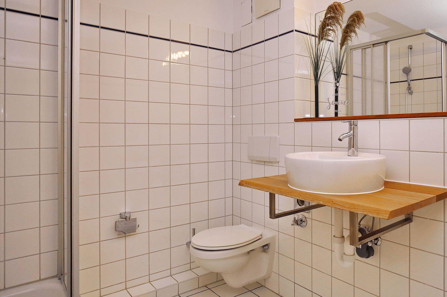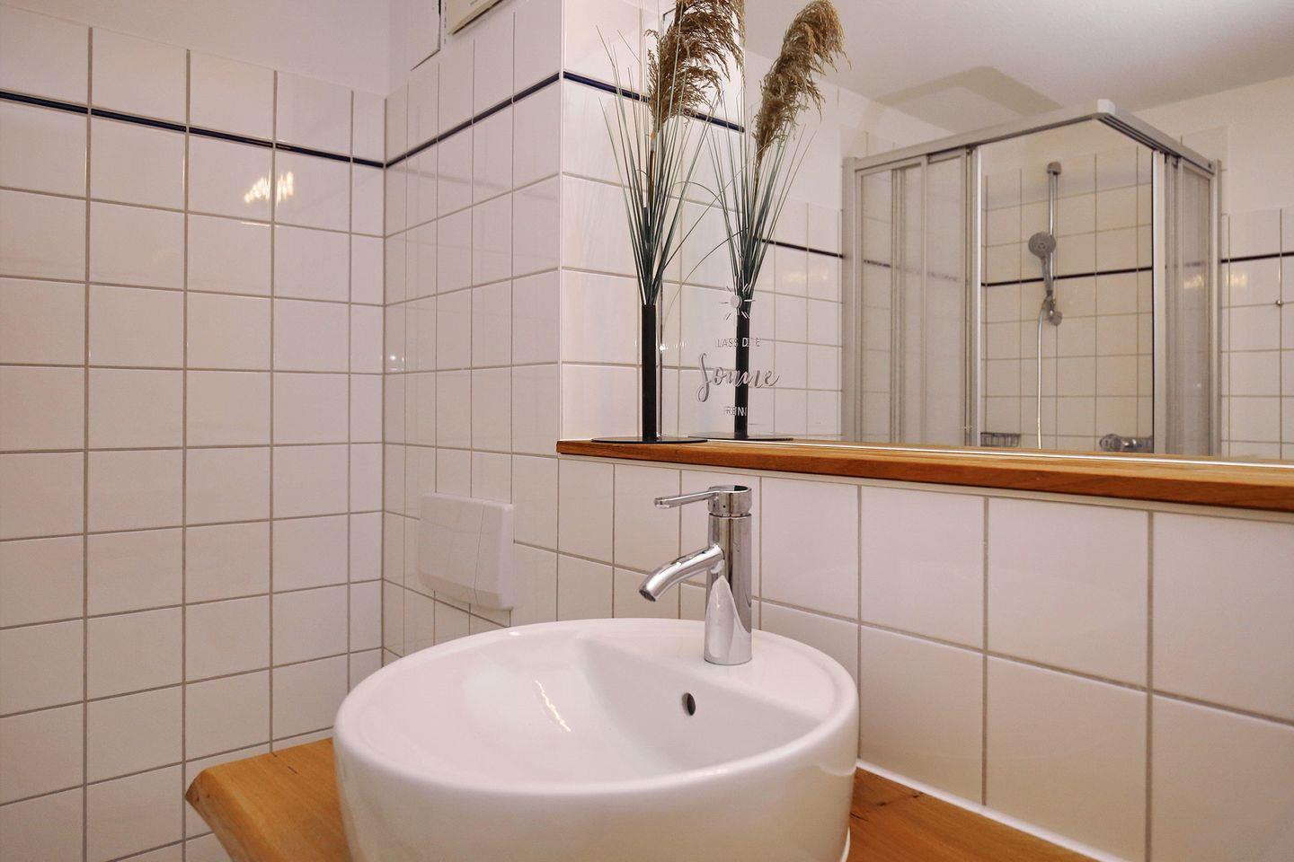 Das Duschbad ist gefliest. Fahrräder können in einem eigenen Kellerabteil geparkt werden. Maximal zwei Haustiere sind in dieser Nichtraucherwohnung erlaubt.