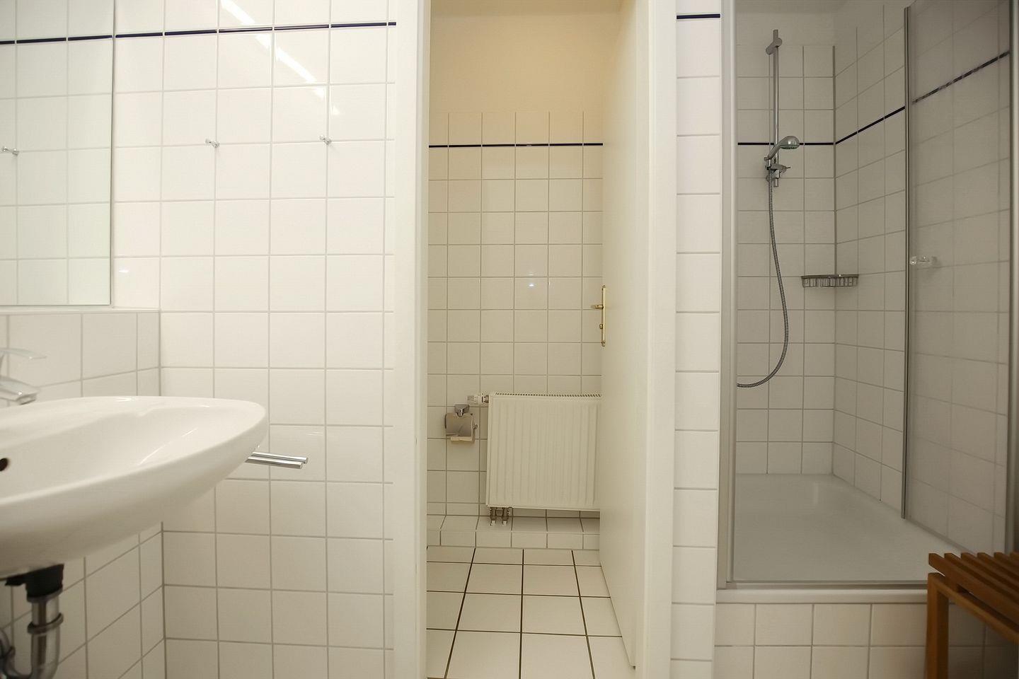Das separate WC trägt zu deinem Komfort bei. Im geräumigen Duschbad gibt es zwei Waschbecken. Ein Fahrradkeller im Haus ermöglicht die sichere Unterbringung von Fahrrädern. In der Nichtraucherwohnung sind maximal zwei Haustiere erlaubt.