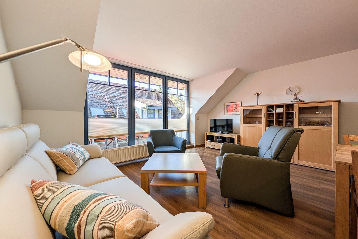 Die Ferienwohnung 03-6 in der Anlage Papillon ist eine schöne 4-Zimmer-Wohnung für bis zu 6 Personen. Die Ferienwohnung liegt im 1. OG und hat einen Balkon in Süd-West Lage. WLAN (ohne Gewähr) und Geschirrspüler sind in der Wohnung inklusive.